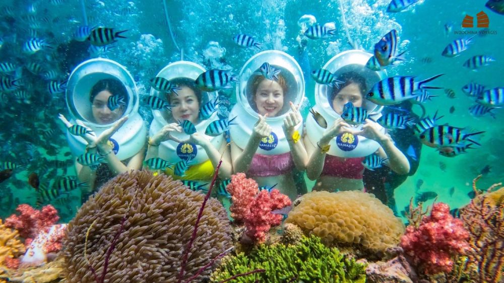 富国岛水下探险:Roi岛水肺潜水和海底漫步【水下探险——在海底漫步或潜水,近距离观赏充满活力的珊瑚礁和热带鱼。 罗伊岛海洋天堂——在安全、有导游的环境中探索清澈的海水和丰富多彩的海洋生物。 海洋世界乐趣——在水下探险之前或之后,享受罗伊岛的海洋公园活动和风景秀丽的海滩。】
