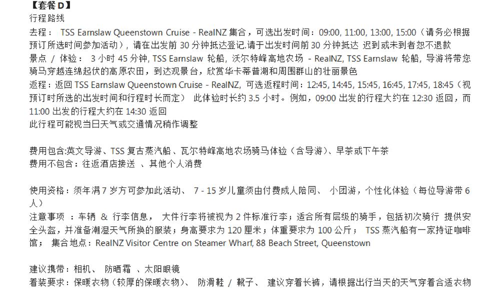 【套餐D】TSS恩斯罗号蒸汽船巡航+ 骑马体验 拼团(详情咨询客服)可选出发时间:09:00, 11:00, 13:00, 15:00(请务必根据预订所选时间参加活动), 请在出发前30分钟抵达登记.请于出发时间前30分钟抵达 迟到或未到者恕不退款; 可选返程时间:12:45, 14:45, 15:45, 16:45, 17:45, 18:45(视预订时所选的出发时间和行程时长而定) 此体验时长约3.5小时。例如,09:00出发的行程大约在12:30返回,而11:00出发的行程大约在14:30返回.