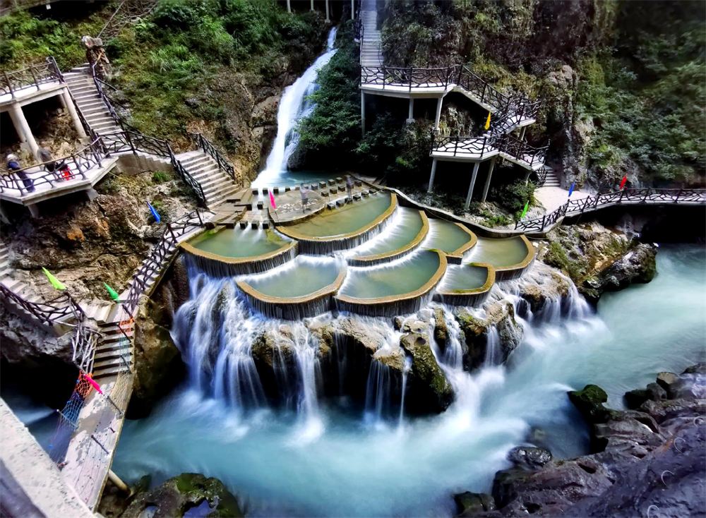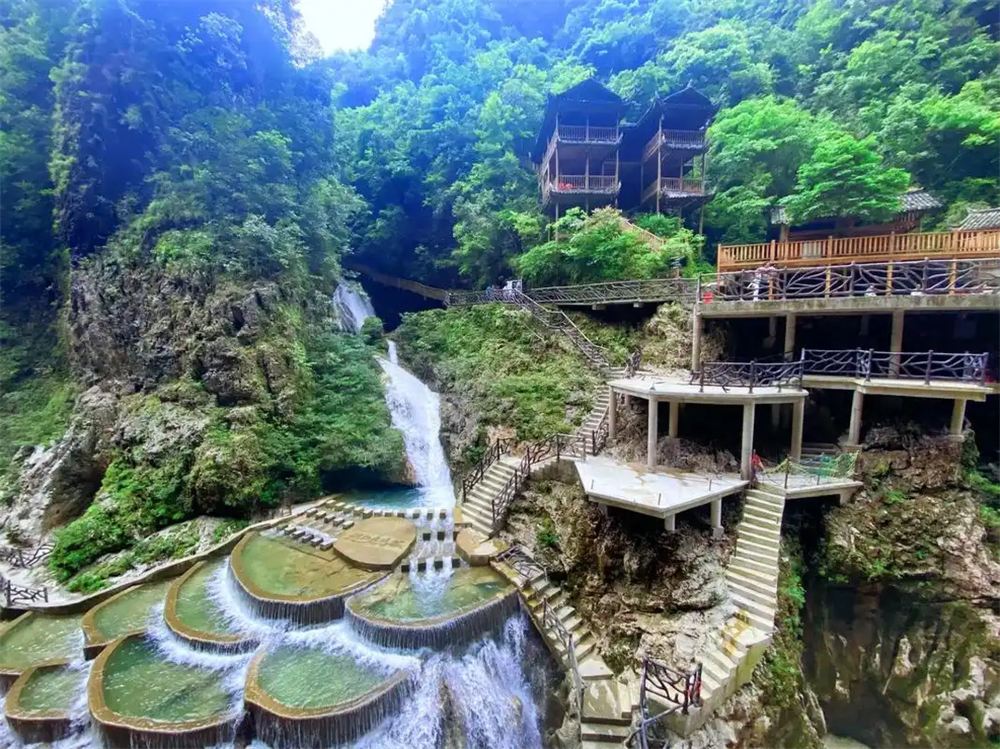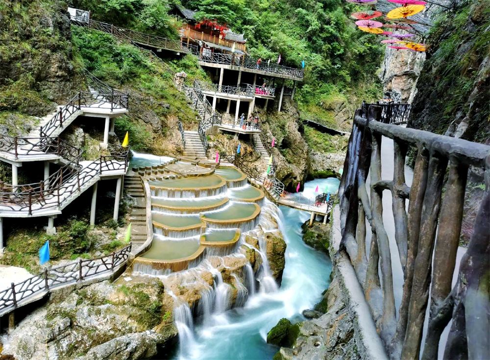 沿着峡谷中的栈道前行,仿佛在穿越一条时光隧道,每一步都能感受到大自然的沧桑与变迁。堑道两旁,奇石嶙峋,形态各异,有的如猛兽咆哮,有的如仙女翩翩起舞,有的如骏马奔腾,让人不禁赞叹大自然的神奇造化。而那玻璃栈道,高悬于飞岩峭壁之上,全长约 82 米,蜿蜒曲折,起伏不断,远观犹如一条攀崖险龙。当你踏上玻璃栈道,脚下是万丈深渊,眼前是壮丽的峡谷风光,那种惊险与刺激,让人心跳加速,却又欲罢不能。
