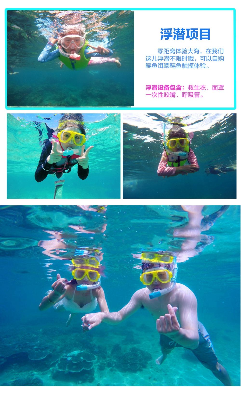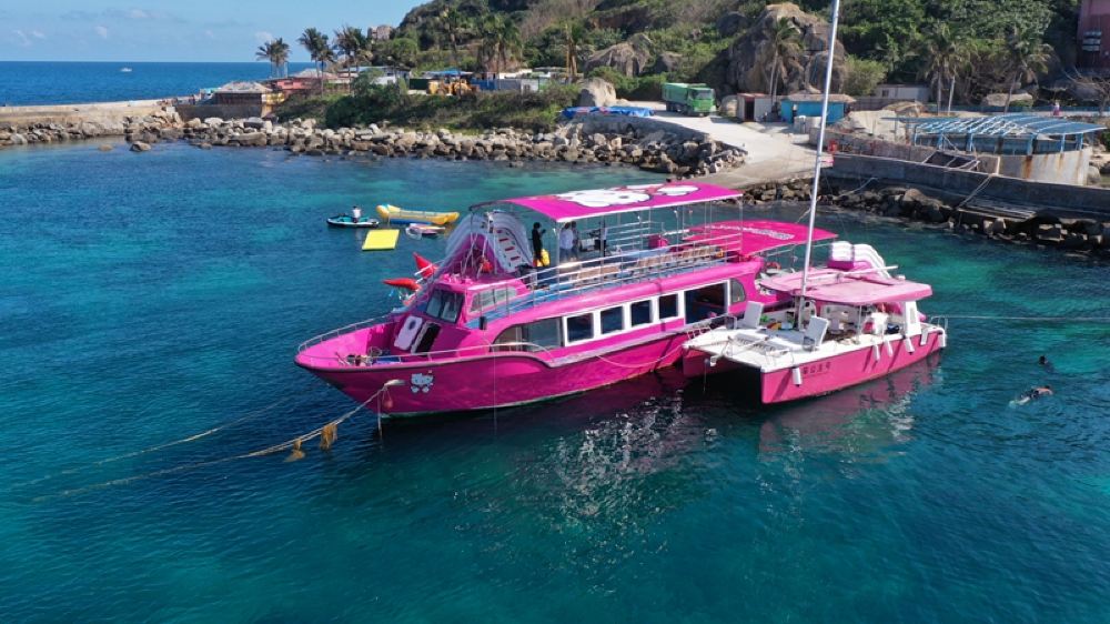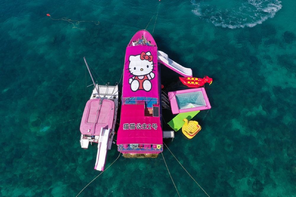 ▲ 项目娱乐:探秘分界洲岛、网红粉色猫猫船打卡、拍摄、鱼礁自由浮潜、浮潜拍照+摄影、海上滑梯、海上泳池、水上浮毯、网红浆板体验、网红玻璃船体验、各类海上网红充气项目打卡拍照等等。