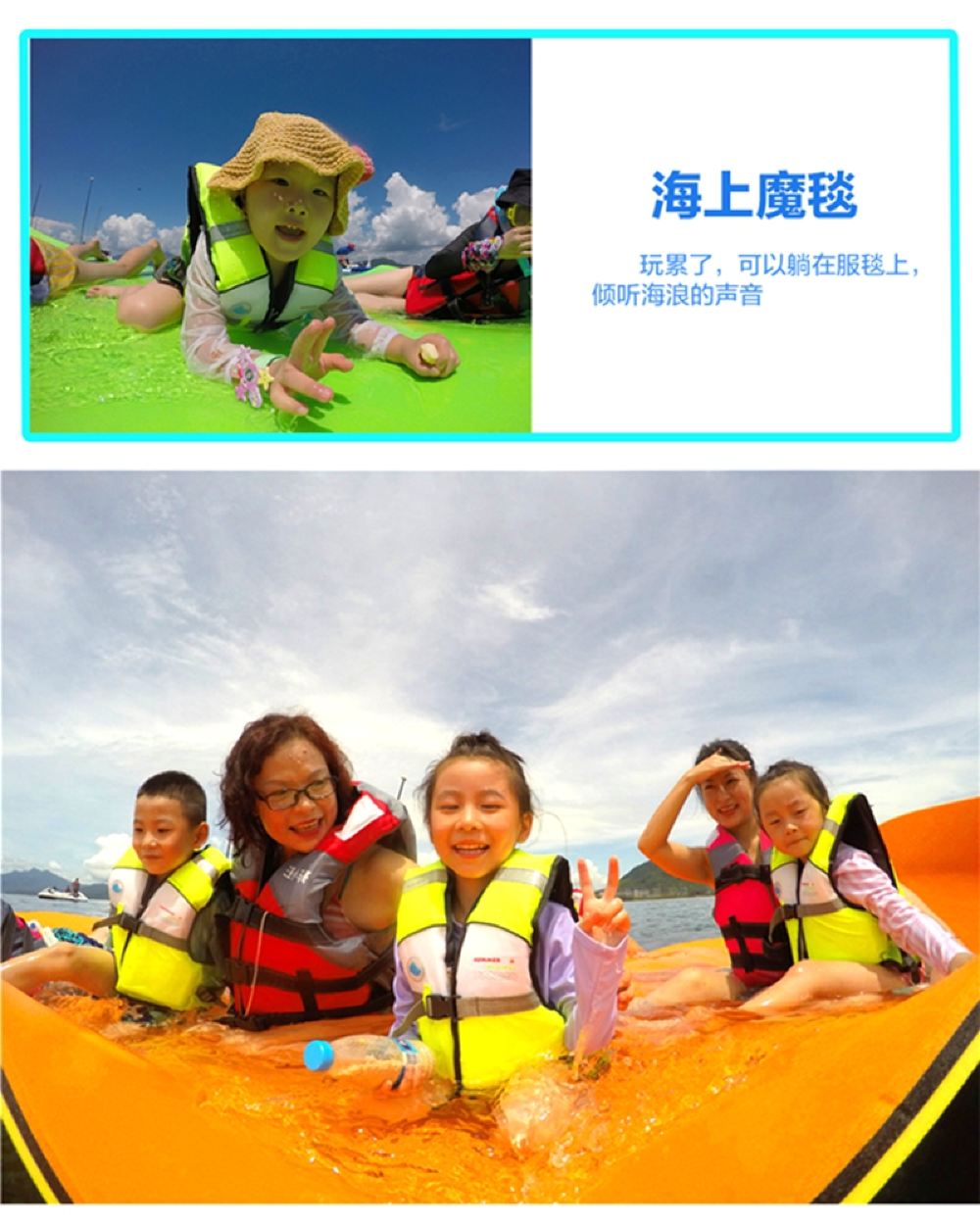 ▲ 猫猫船上配备:包点、饮用水、浮潜装备、海上滑梯、水上浮毯、无人机、 Gopro 摄影相、浆板、网红玻璃船、各类海上网红充气项目等等