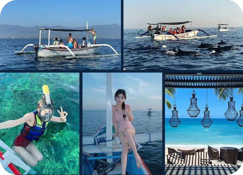 ▲罗威纳追海豚(Lovina dolphin watching):罗威纳是巴厘岛知名的海豚栖息地,清晨出海时,常能看到数十只海豚在船边嬉戏、跳跃,与晨光中的海面相映,构成一幅生动画面,是亲近自然的独特体验。