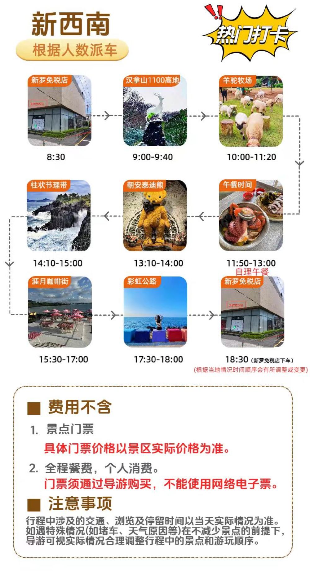 韩国济州岛羊驼牧场朝安泰迪熊博物馆柱状节理带彩虹公路一日游【纯玩体验,打卡网红景点】