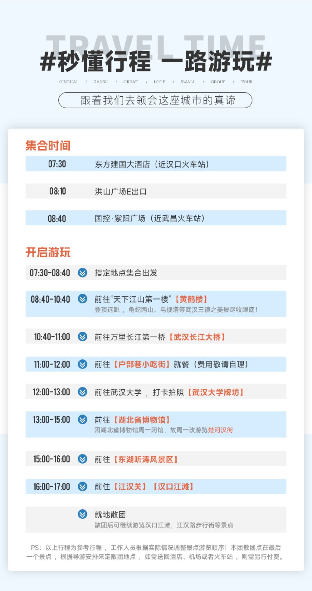 4、本行程散团点为汉口江滩,如需送回车站或酒店,则需另需付费;