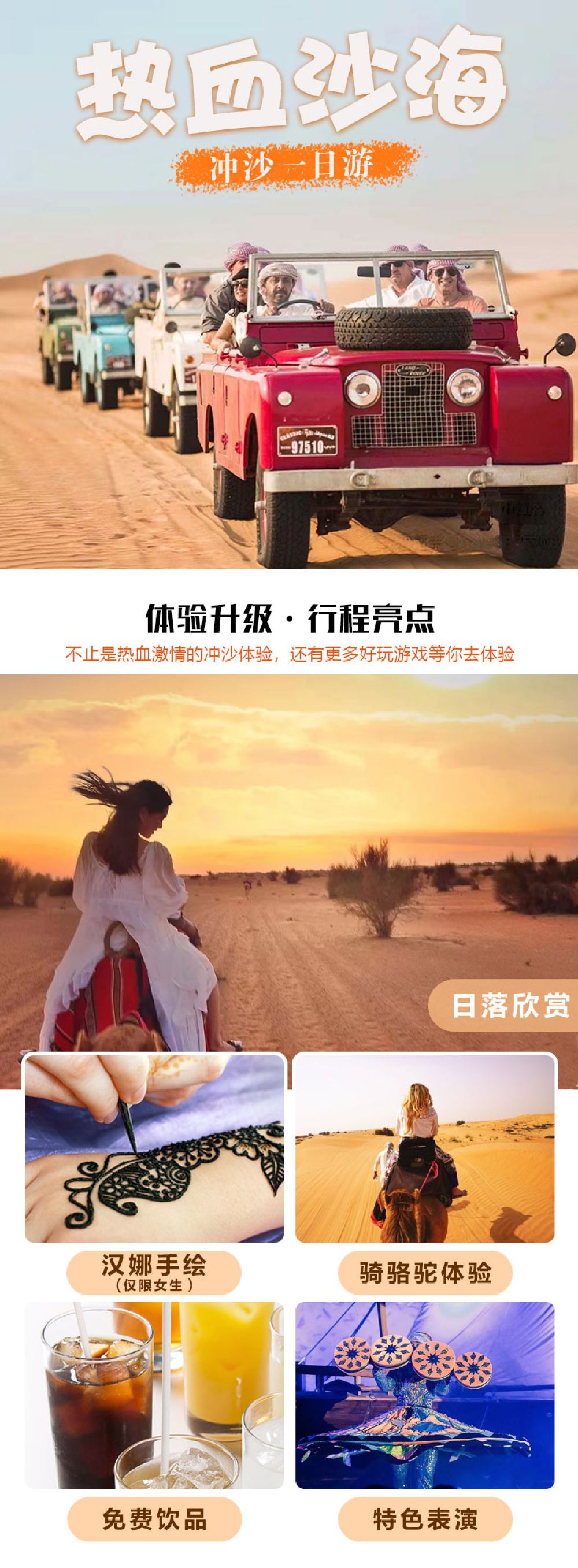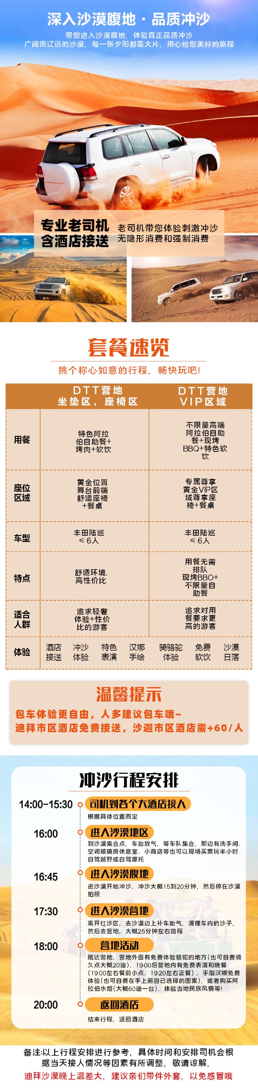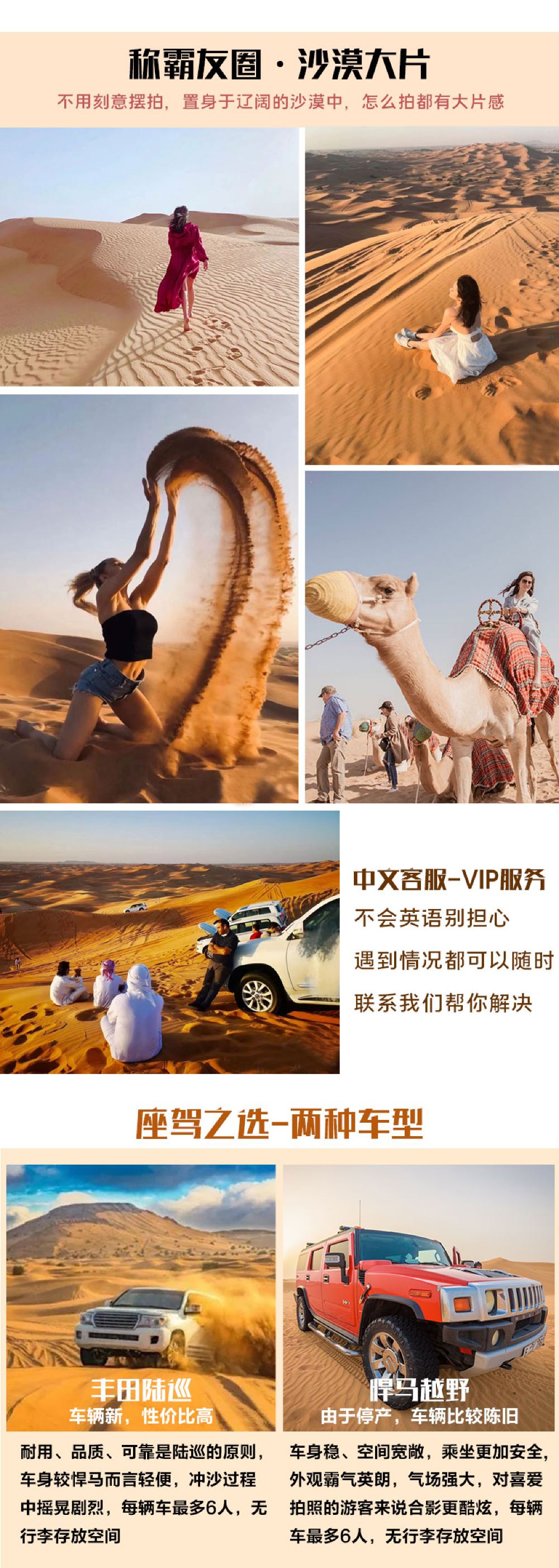 迪拜冲沙一日游【 DTT网红高端冲沙营地晚餐+表演+骑骆驼】【[中文服务]当地大型地接社,专业司机,安排中文在线客服全程衔接】