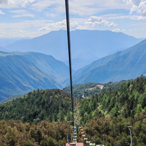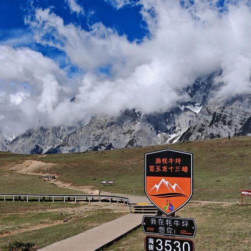 ▲ 牦牛坪是通过中索道到达的。中索道全长1200米,能够将游客送至海拔3700米的牦牛坪,是欣赏玉龙雪山的美景地点之一,牦牛坪索道为半封闭式,如雨天参观景点需旅客自备好防雨措施!