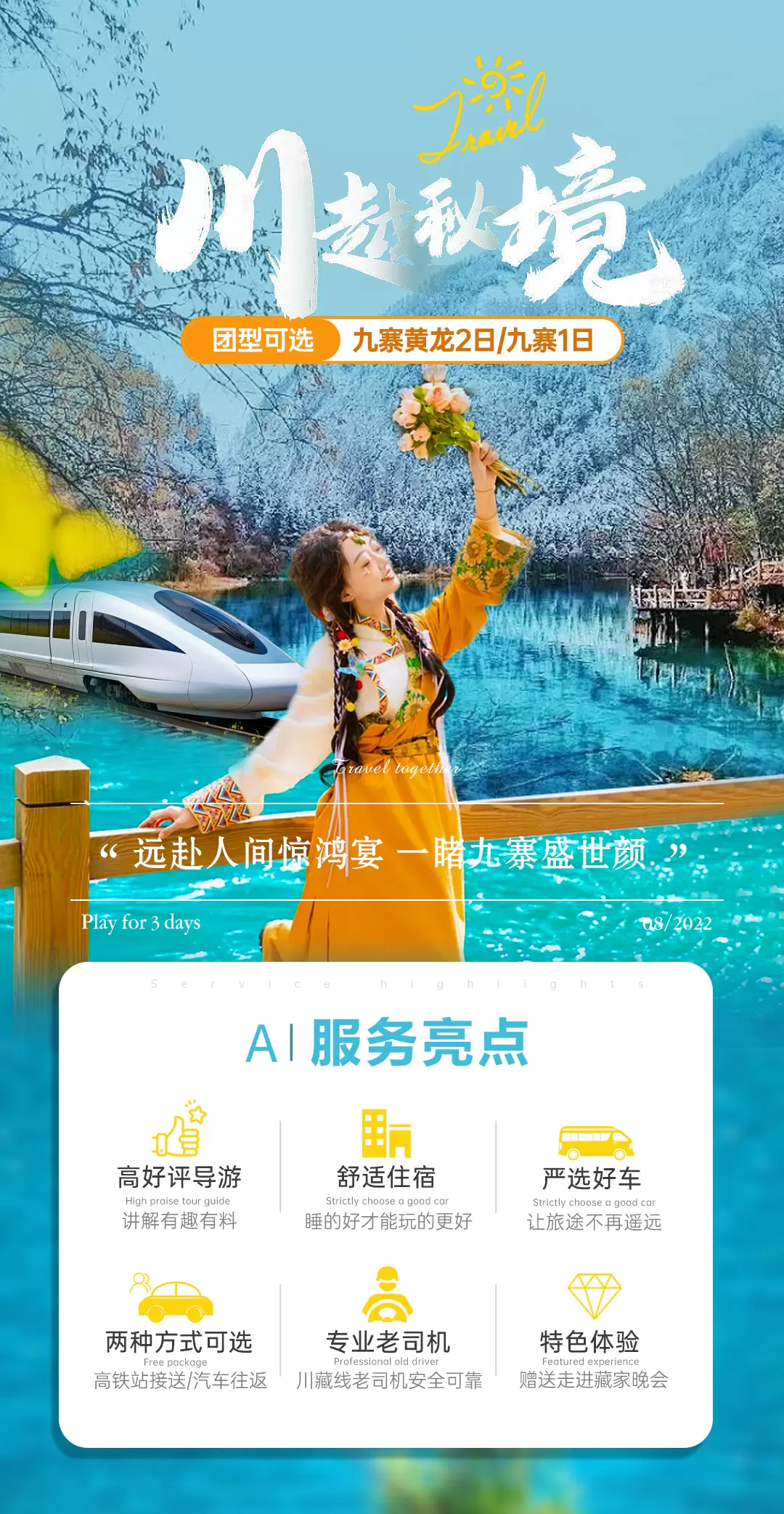 九寨沟风景区+黄龙风景名胜区二日游【动车2小时直达 | 宽体头等舱舒适出行 | 赠送藏家牦牛汤锅】