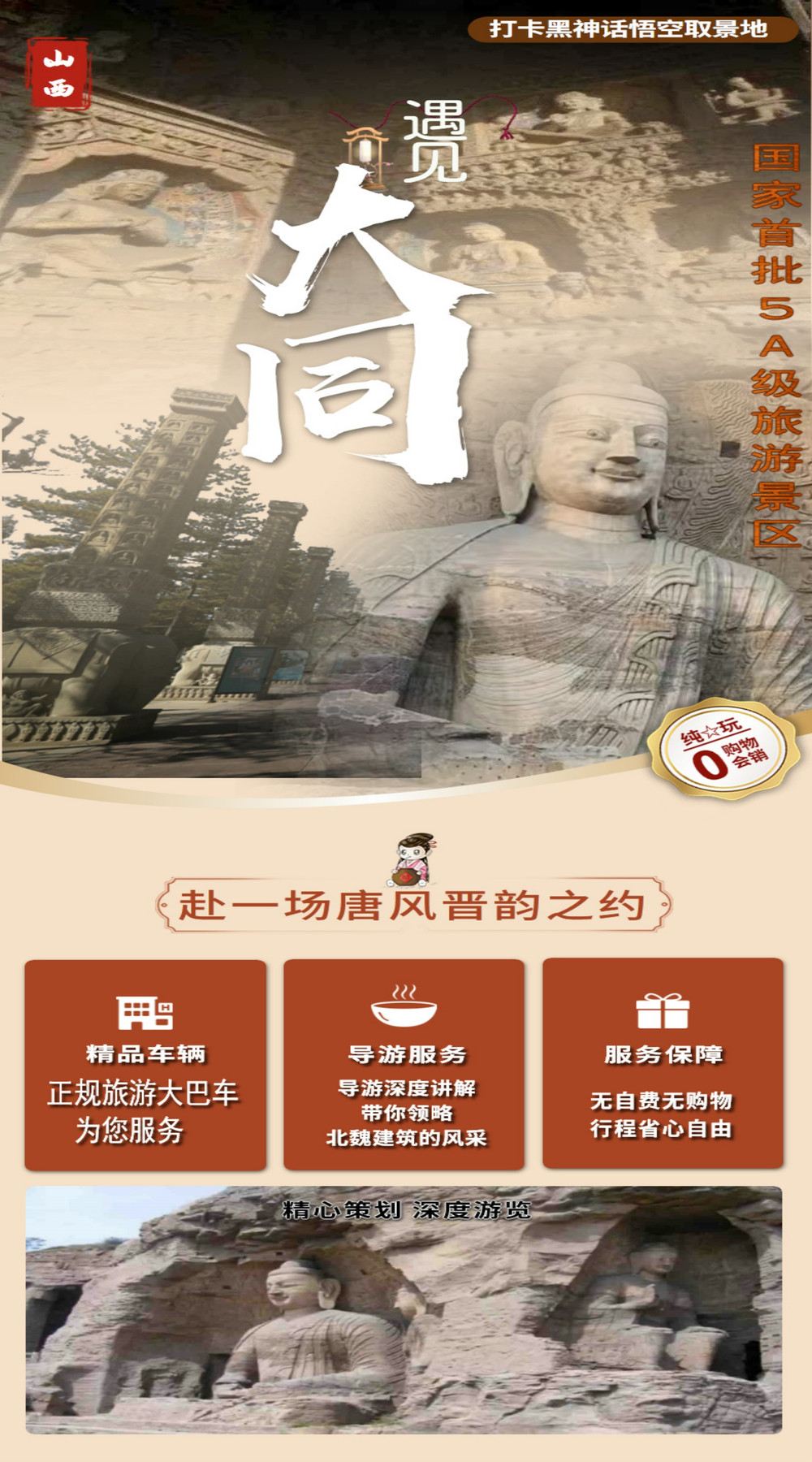 【上门接16人左右团上下午场】云冈石窟半日游含耳麦资深讲解【[文化融合的典范]纯玩云冈3小时+资深导游深度讲解,云冈石窟国家5A景区,世界三大石雕艺术宝库,】