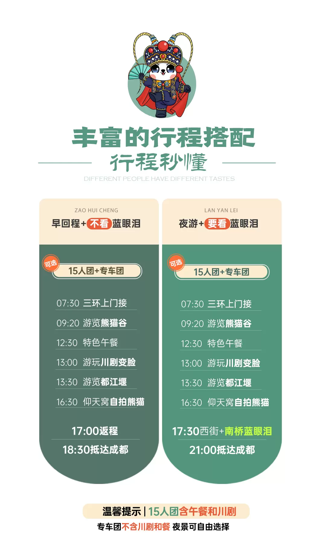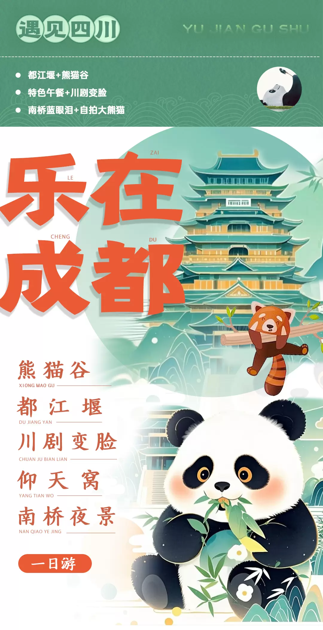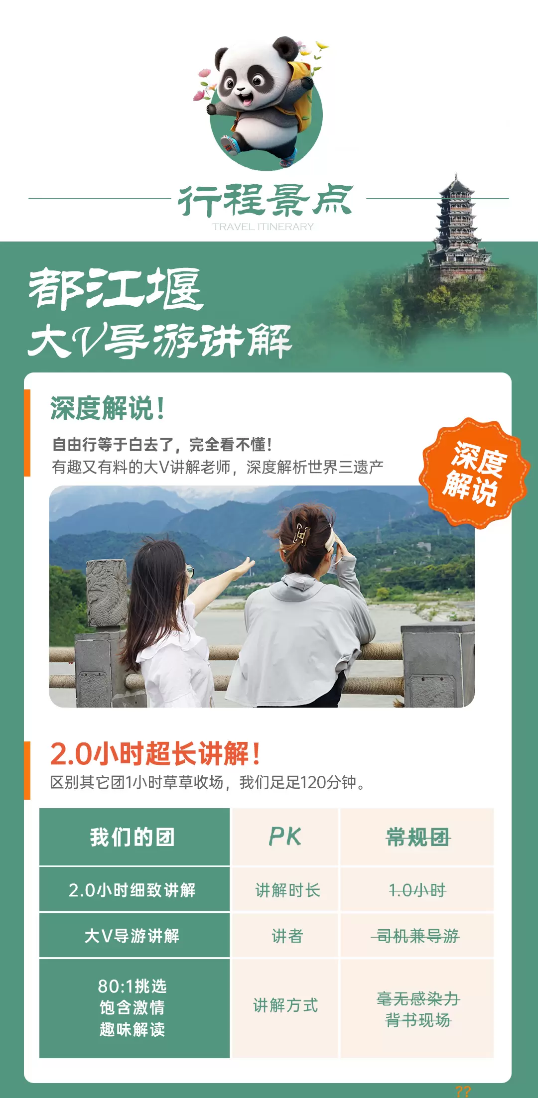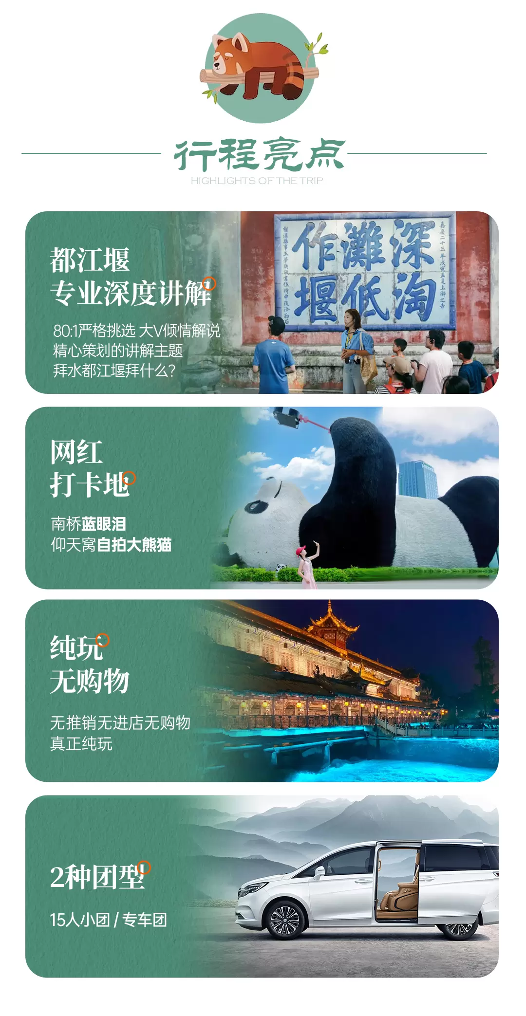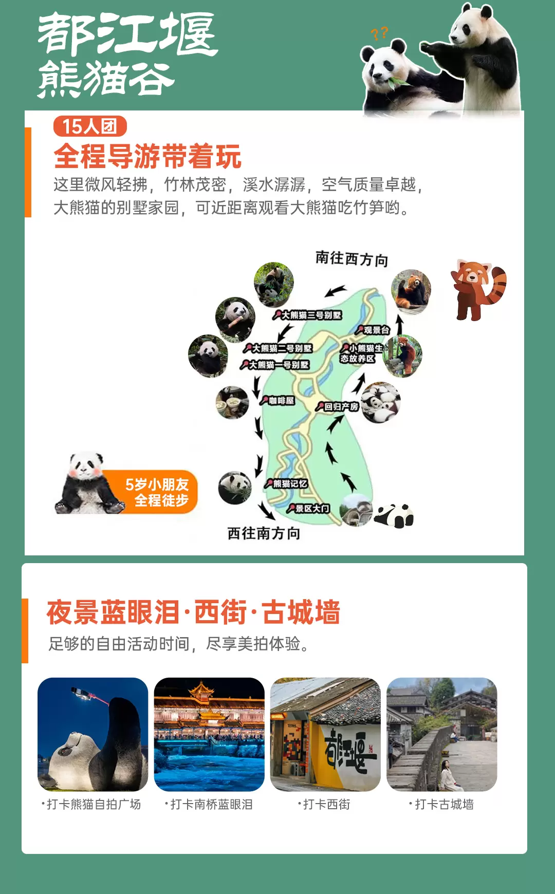 成都熊猫谷+都江堰景区一日游【15 人小团+全程导游 | 含门票+川剧+午餐 | 网红自拍熊猫+蓝眼泪】