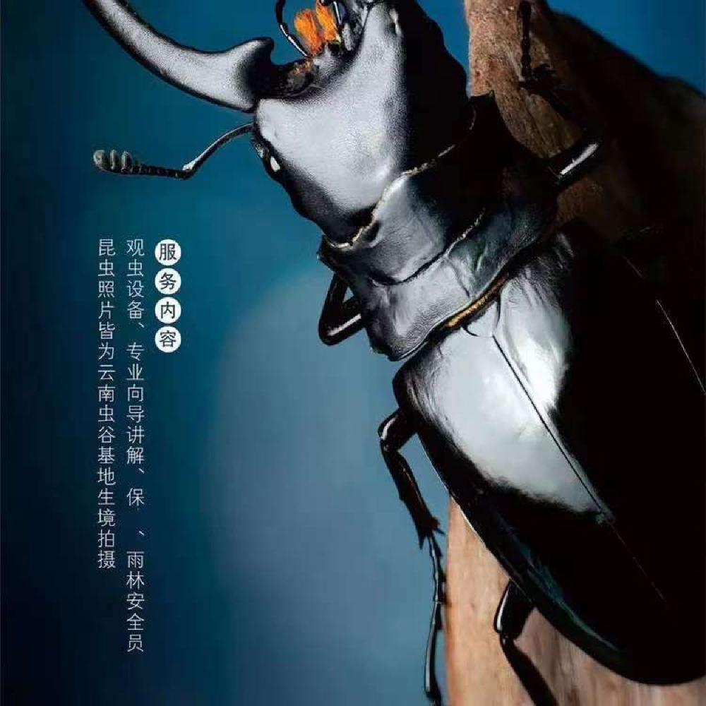 ▲ 云南虫谷夜观活动内容: 1、观看昆虫视频(基地园区) 2、特有昆虫生活环境摄影展(基地园区) 3、生态雨林精灵缸(基地园区,西双版纳特有、稀有昆虫活体展示) 4、雨林徒步,夜探昆虫(户外) 5、昆虫观测站,零距离与昆虫共舞。(基地园区) 基地挂牌价289元/人,车费50/人,标本100/人,大小同价,全程2个半小时,每天19:00基地集合。建议小朋友穿长衣长裤,运动鞋