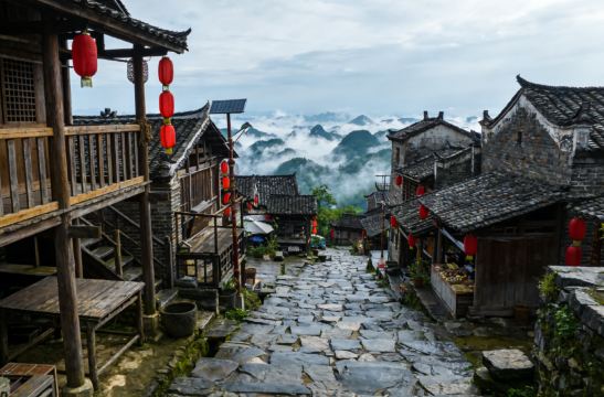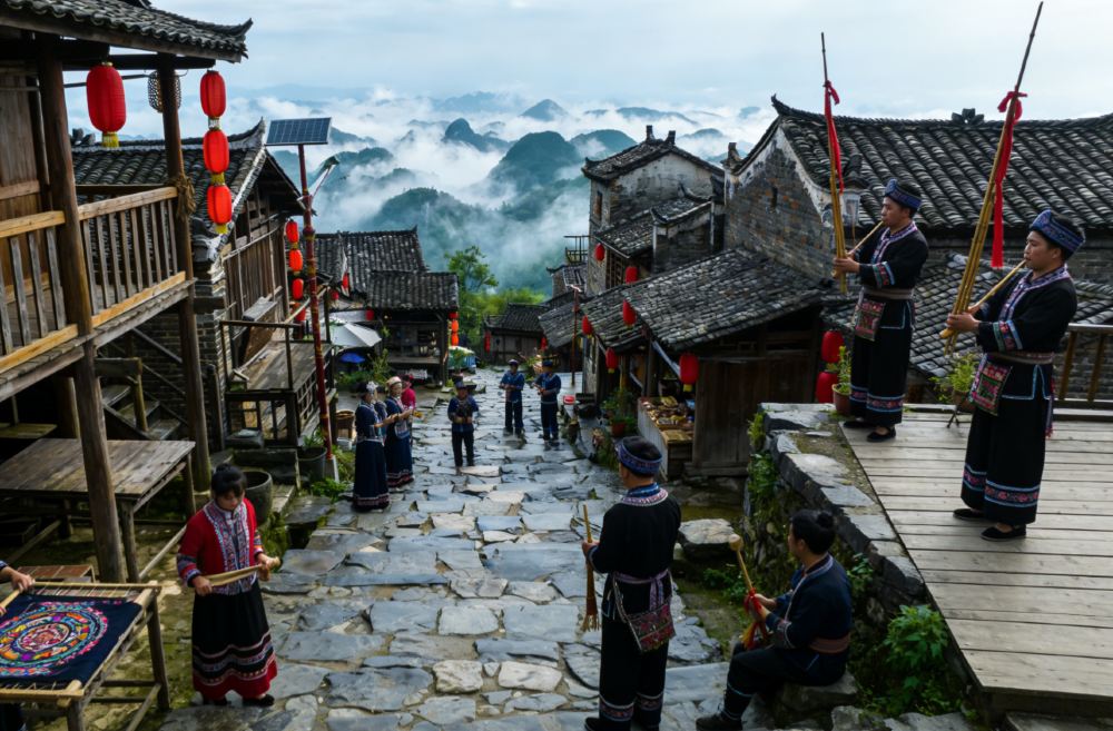 ▲ 南岗千年瑶寨,坐落在百里瑶山万山朝王的正面,寨门海拔 808 米,是中国历史文化名村、中国传统村落