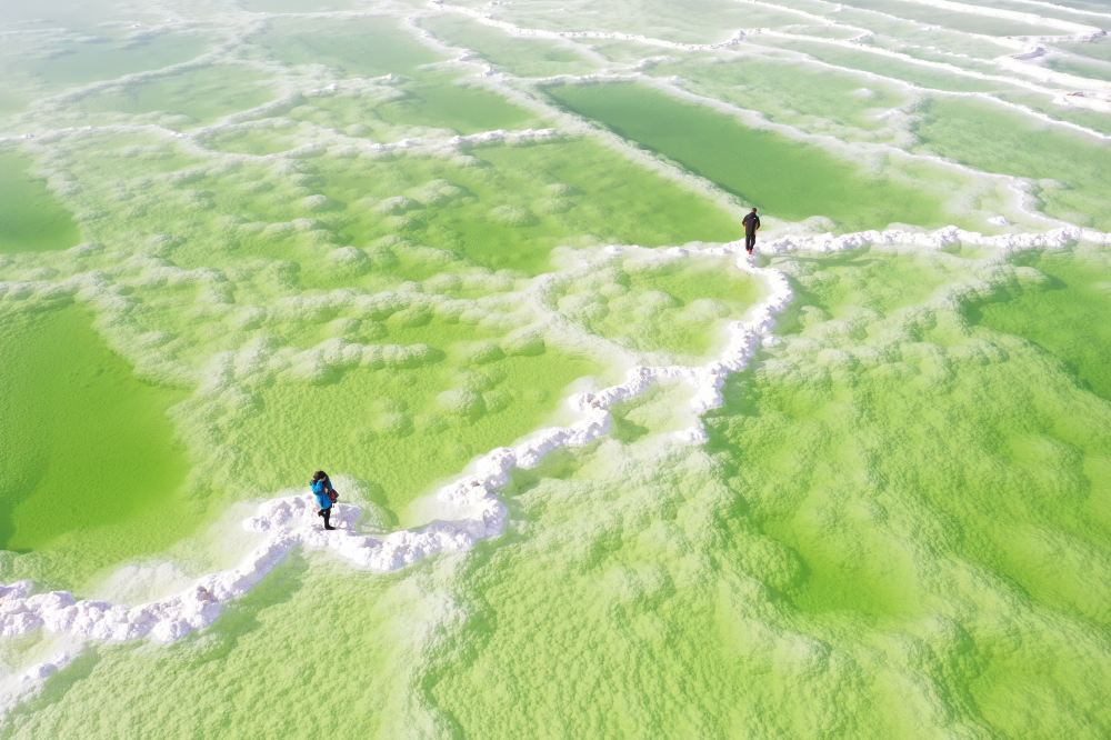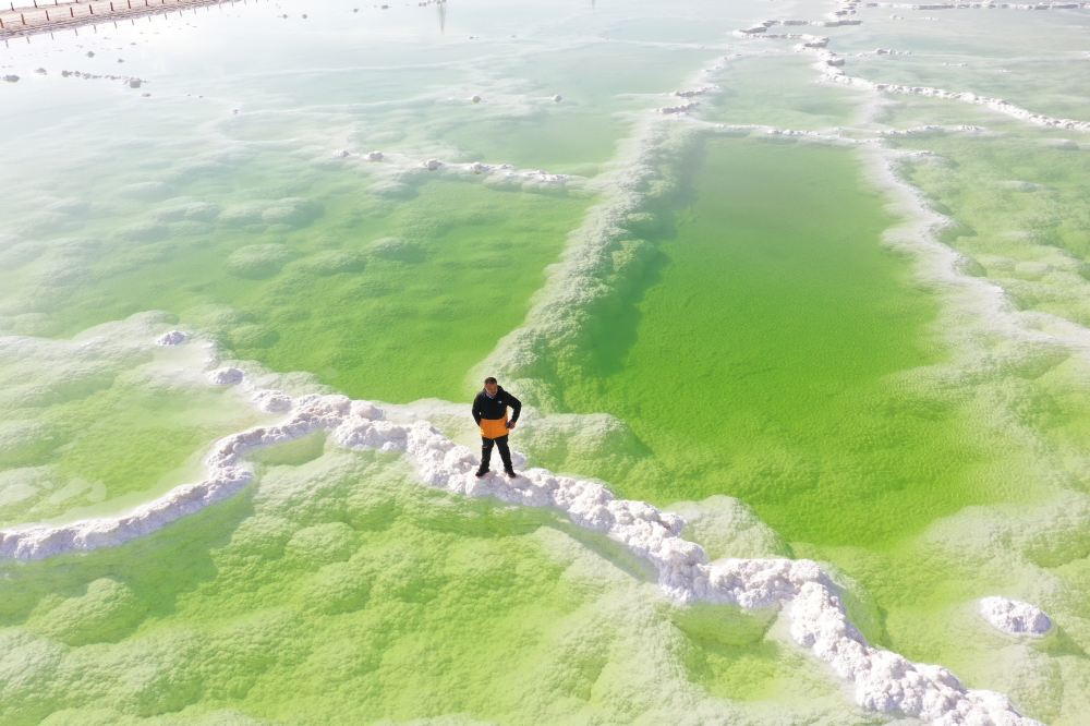 ▲ 上帝打翻了苹果汁”—这就是察尔汗盐湖观赏高原调色盘—大柴旦翡翠湖