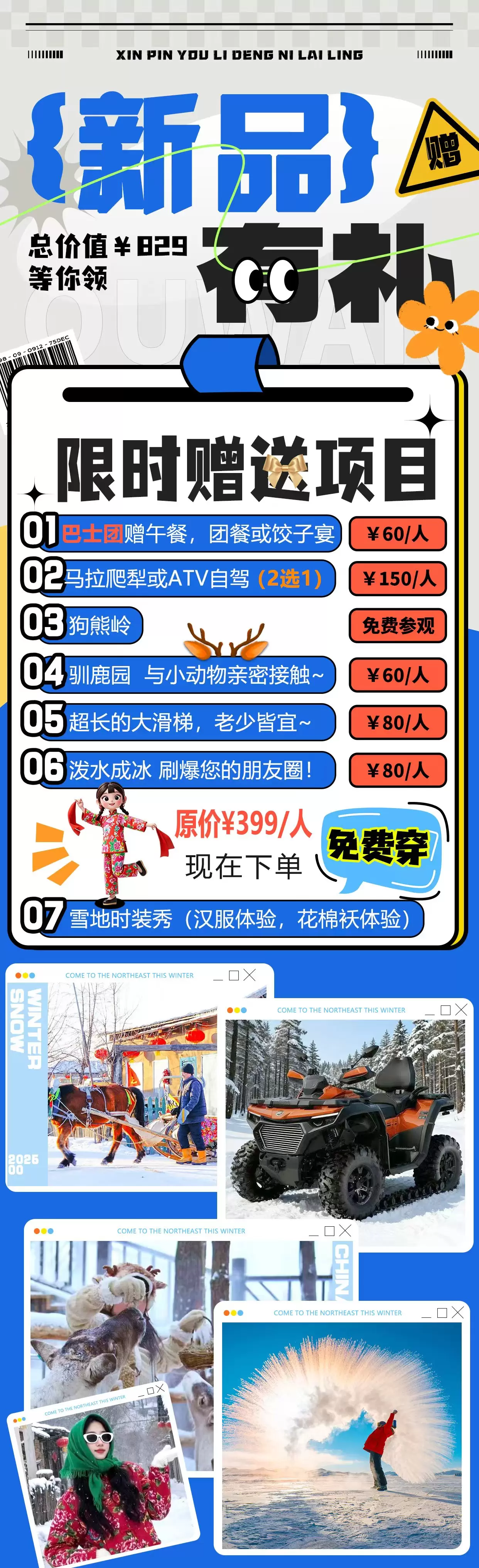 中国雪乡+大秃顶子山一日游【2-6人小团◆赠马拉爬犁或ATV二选一◆雪地摩托◆冰雪画廊◆东北大花袄】