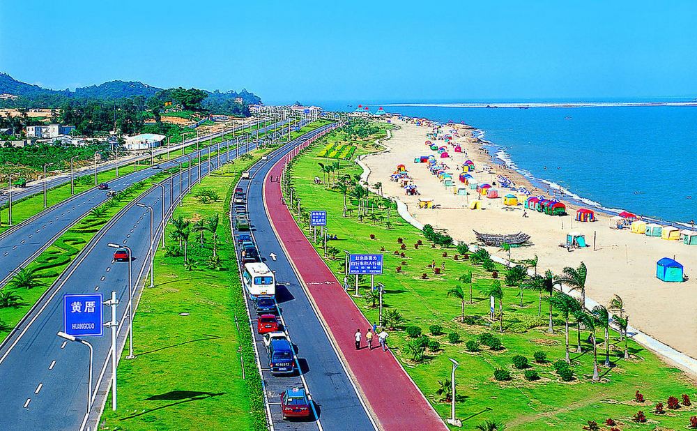 ▲ 出发前往黄厝沙滩。位于厦门岛东南岸,与金门岛隔海相望(东距小金门 4.6 公里),天气晴朗时可清晰看到对岸金门岛及岛上标语。这里有一座醒目的 “一国两制,统一中国” 巨型标语,是厦门的热门打卡地之一。游客既能感受 “一国两制” 标语所承载的国家统一情怀,又能享受细腻沙滩、清澈海水和海风拂面的自然之美。