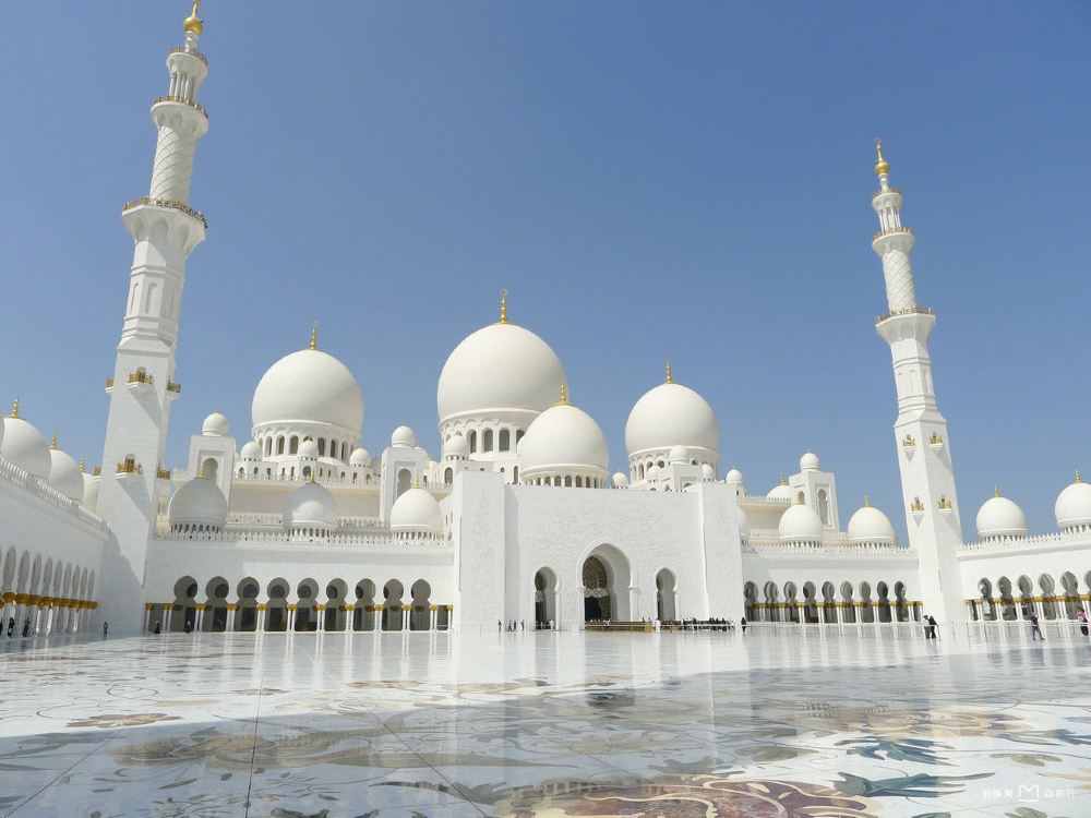 ▲ 纯白色穹顶与高耸的双塔在日光下巍然生辉,衬着碧蓝天空,成为迪拜经典的明信片景观。