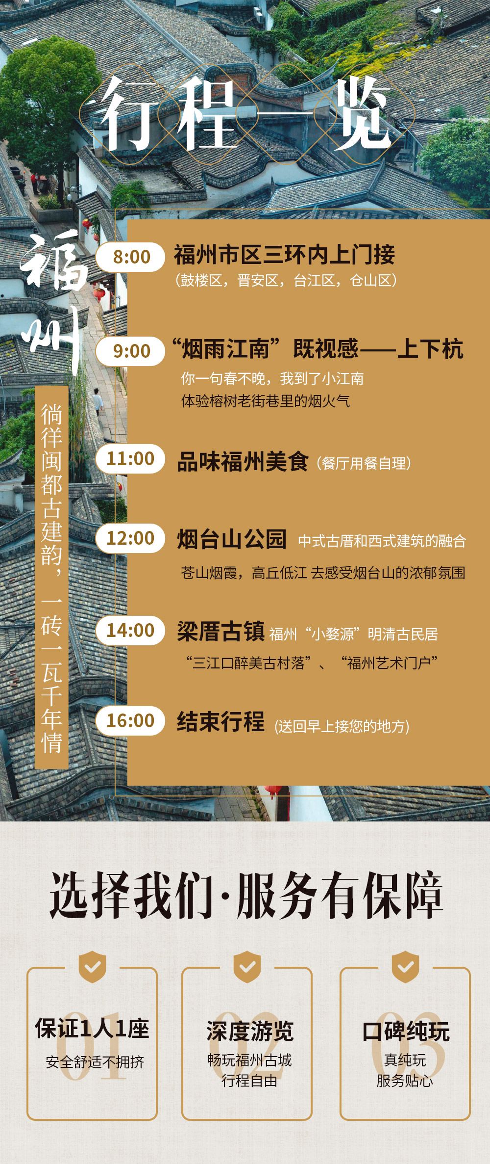 福建福州一日游:上下杭+烟台山+梁厝村【纯玩8人小团无购物】【[行程自由]福州多个景点(如:三坊七巷、福建博物馆)可自由更换游玩。司导全程配合,贴心服务+说走就走】