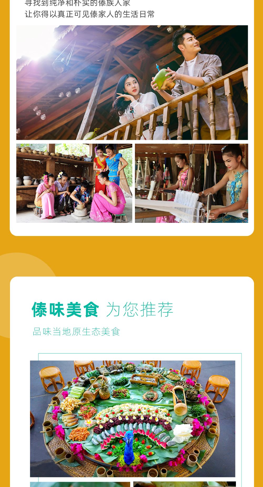 【傣族园景区】主要由五个村寨组成,分别是曼将、曼春满、曼乍、曼嘎、曼听,五个保存完好的傣族自然村寨组成。展示傣家历史、文化、宗教、生活等风土人情的民俗生态旅游景区。是了解体验淳朴民风民俗的地方。