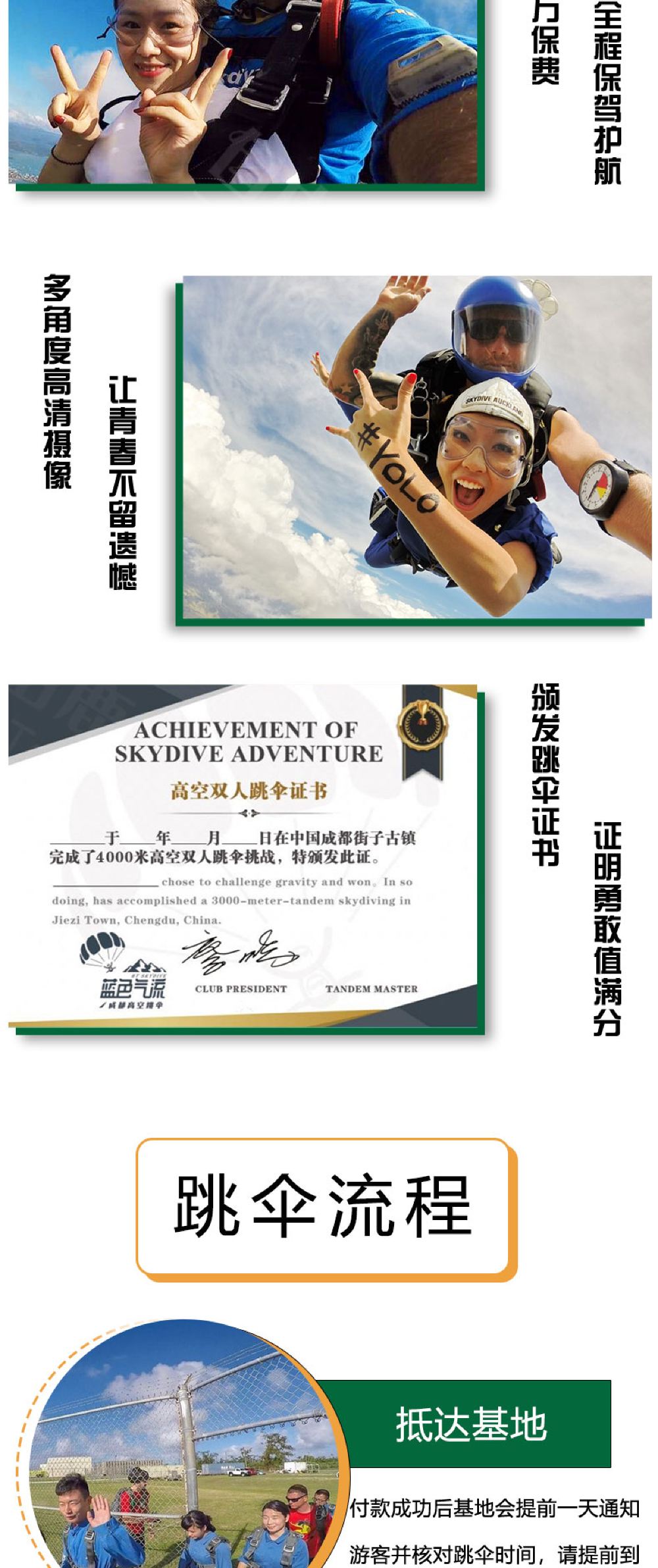 成都崇州高空跳伞+基地一日游【4000米跳伞+高清摄像跟拍】【[刺激嗨玩]4000米高空跳伞,高清摄像跟拍】