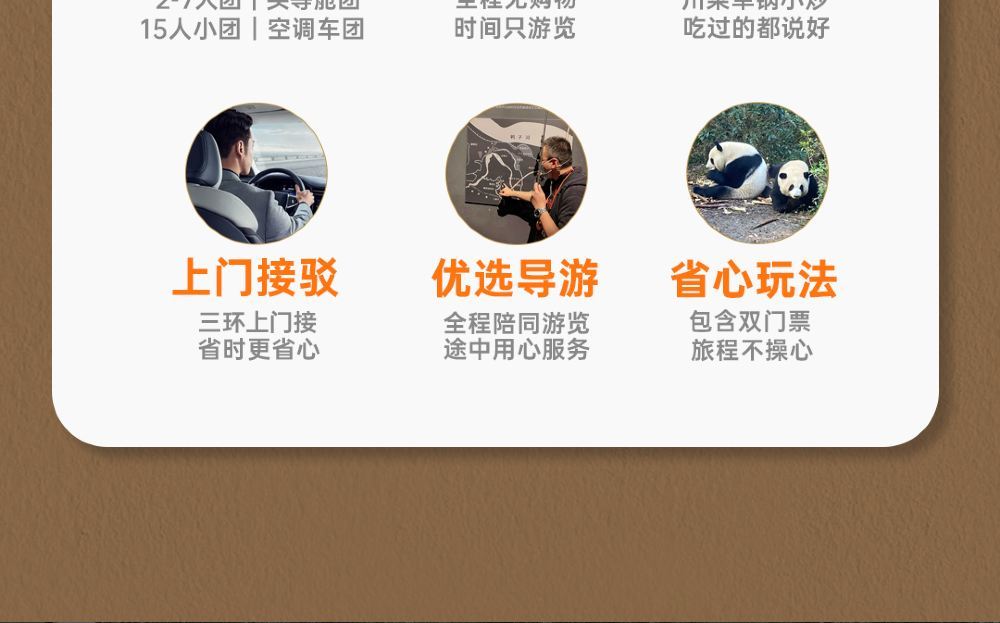熊猫基地+三星堆一日游上门接无购物地道川菜可选车型套餐【可选套餐车型+首道门票++三星堆人工3小时精讲+中餐】