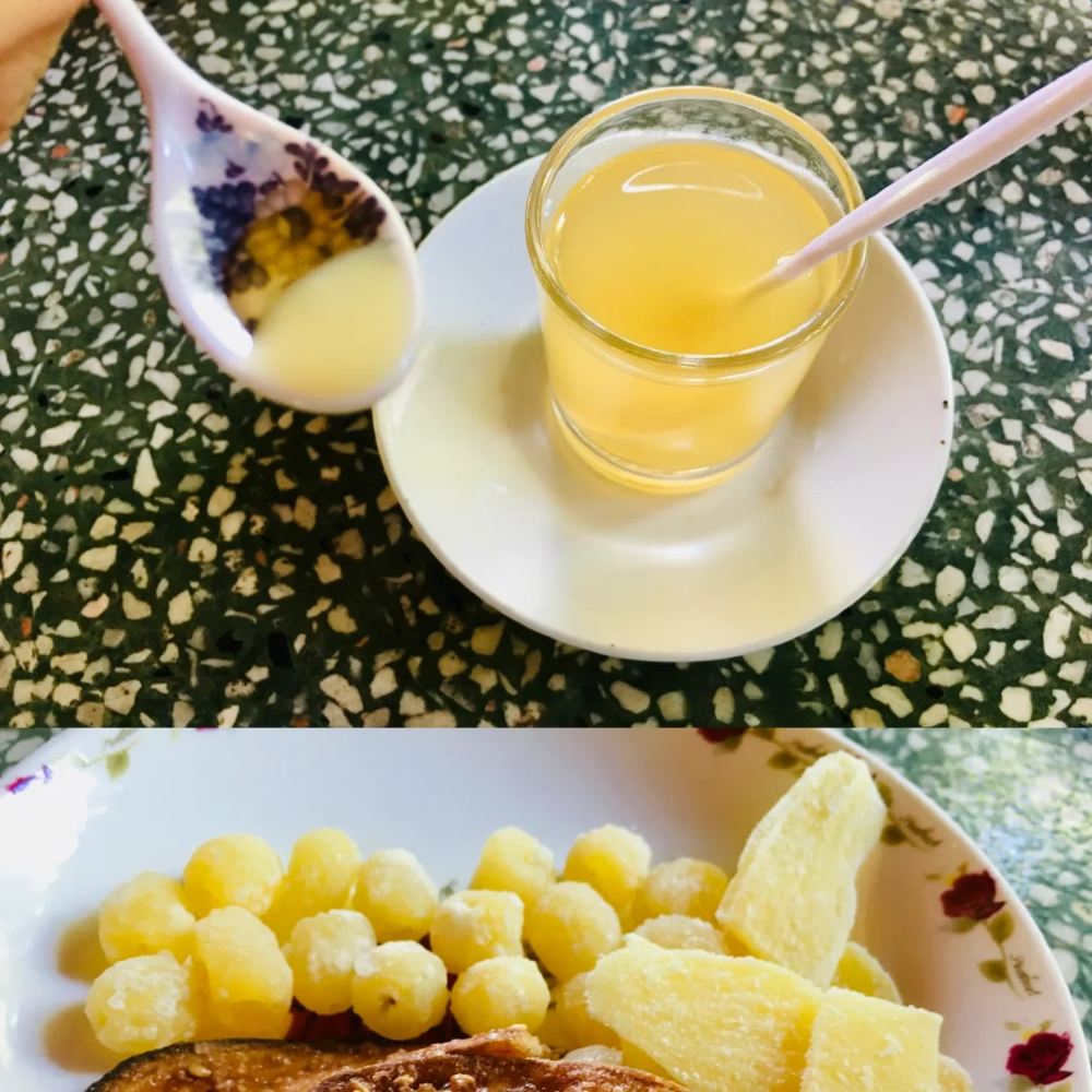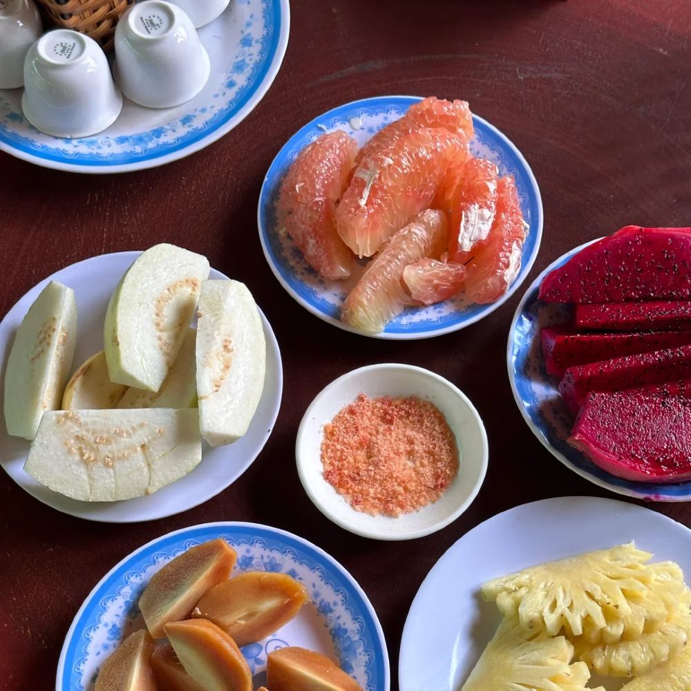 手摇远处的河道风光,品尝热带水果,喝美味的茶