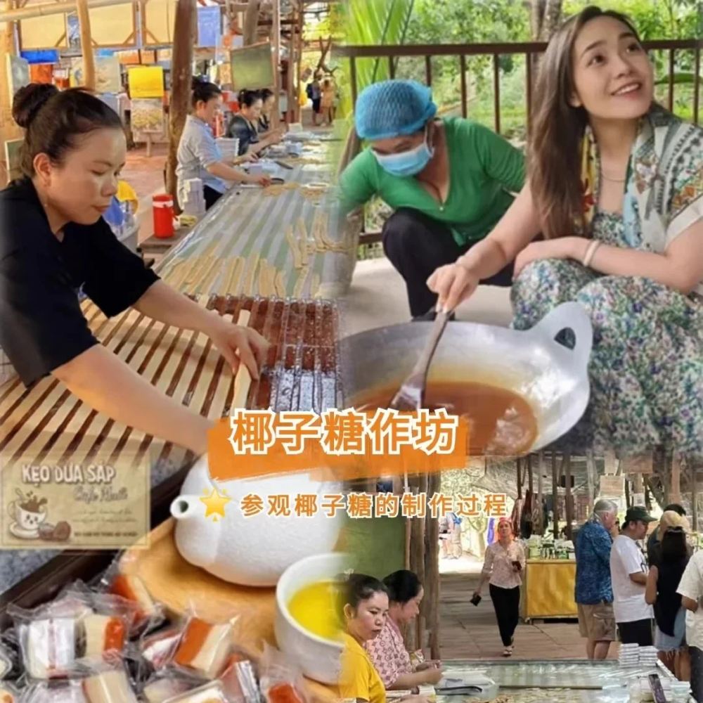 走进传统手摇船,欣赏乡村风光,参与当地居民家庭活动,参观蜂蜜农场,体验手工制作椰子糖,品尝椰子茶。
