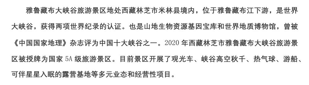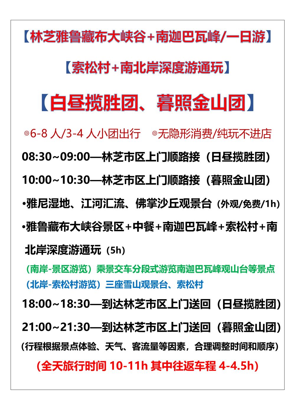 大峡谷+索松村+巴松措+鲁朗2日游: