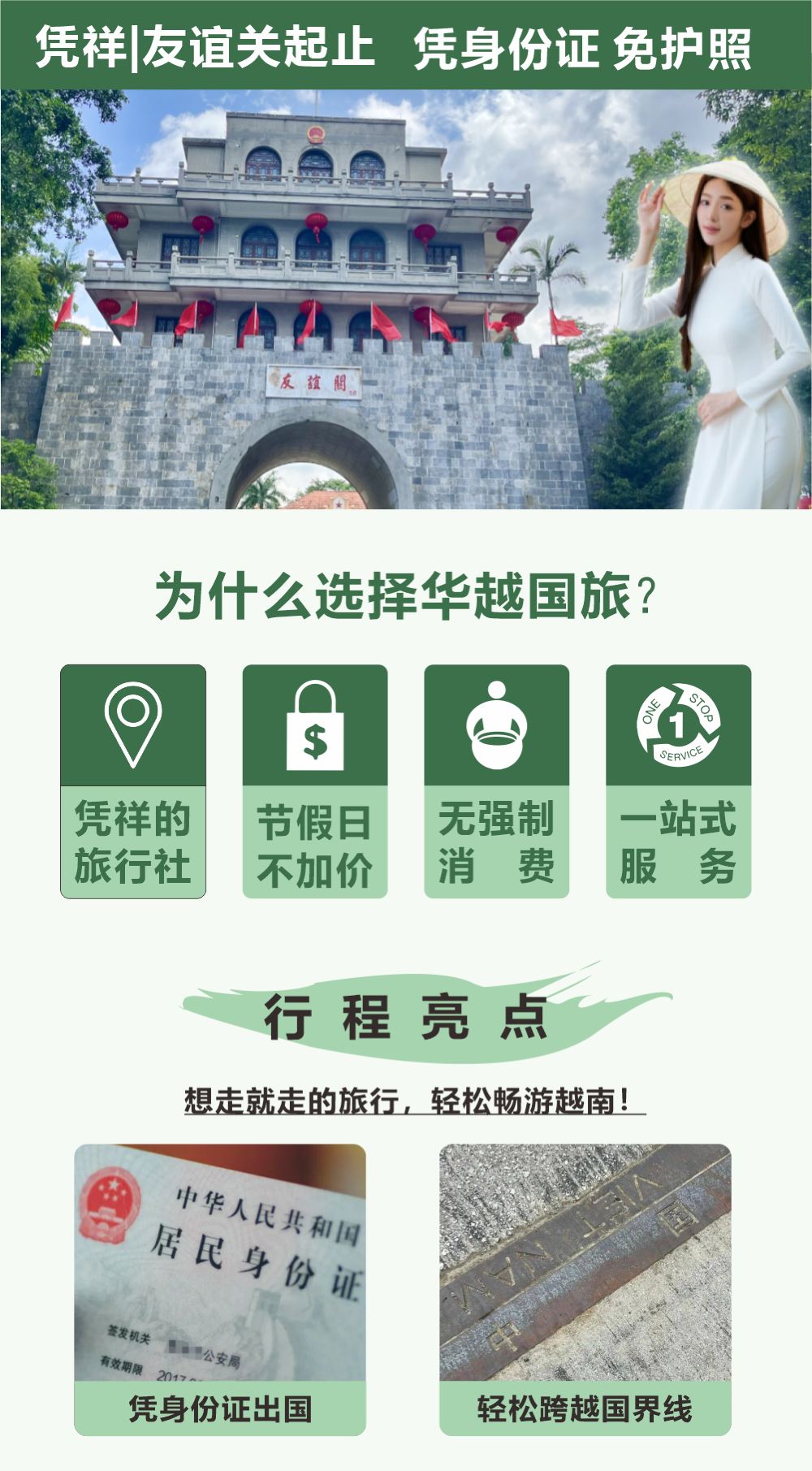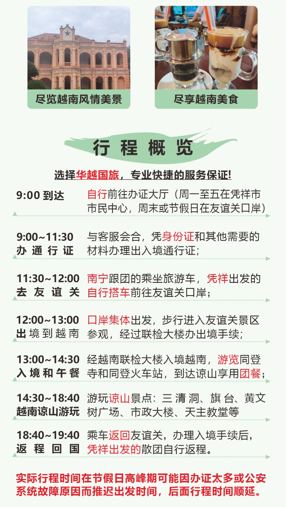 - 通行证办好后游客须自行前往友谊关景区,领队将会带齐证件后立即前往友谊关景区与游客会合