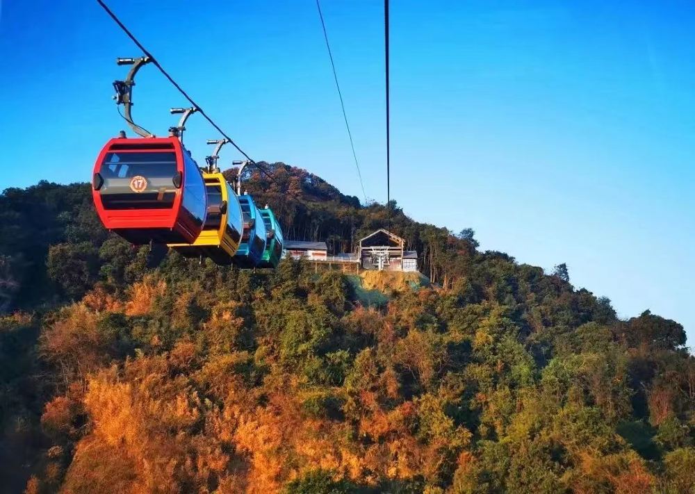 飞龙索道是高空客运索道,(单程索道时长约12分钟),索道型式:单线脉动循环固定抱索器六人吊箱;索道长度1100米,落差158米,垂直落差90米,每组吊箱数4个,吊箱容量6人,每小时单向运载量500人。