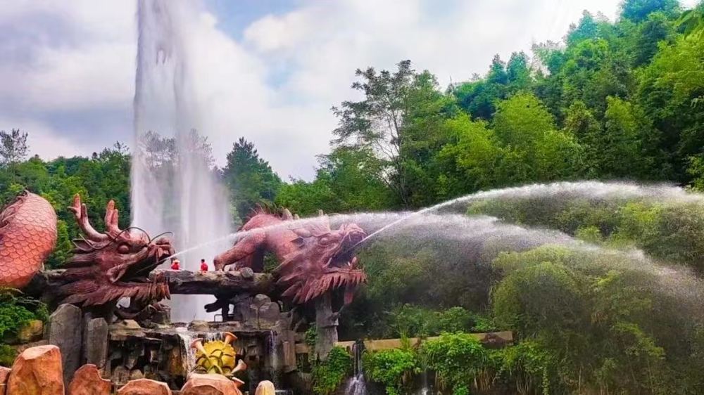 声音越大,水柱越高。龙头水柱最长可达28米,水柱喷起时龙头下面两侧会升起薄薄的烟雾。湖面水柱可达69米,喷起时会形成一道明亮的彩虹,经久不散。