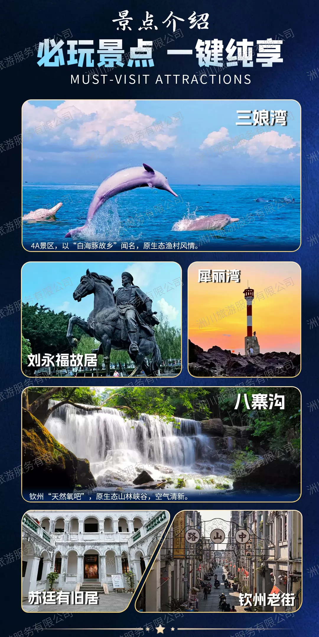 北海老街+北海银滩景区+冠头岭+三娘湾+犀丽湾+刘永福故居+苏廷有旧居+钦州老街景区三日游