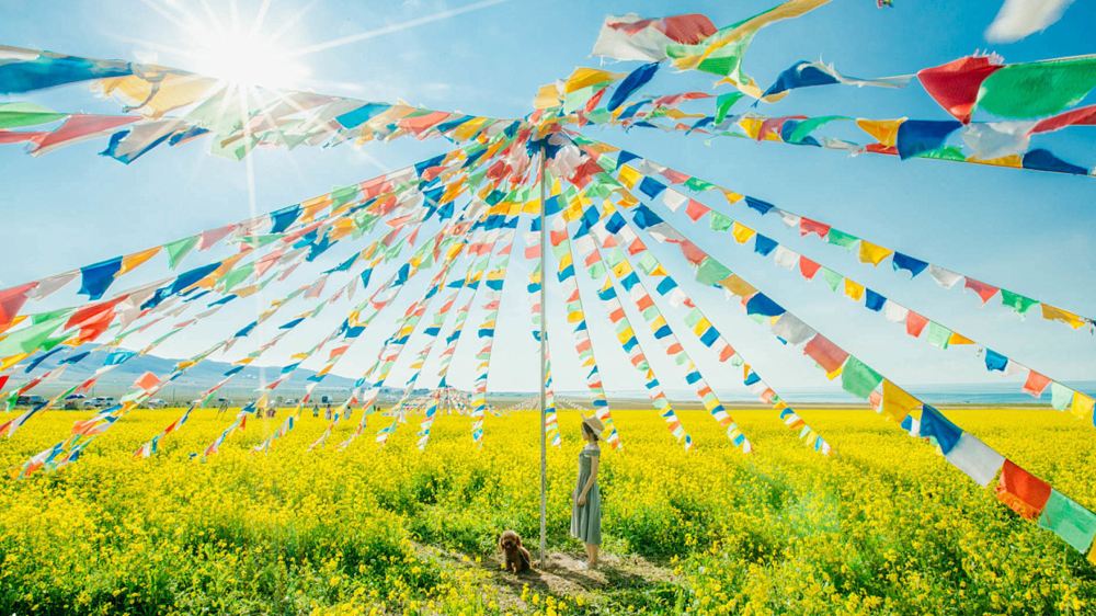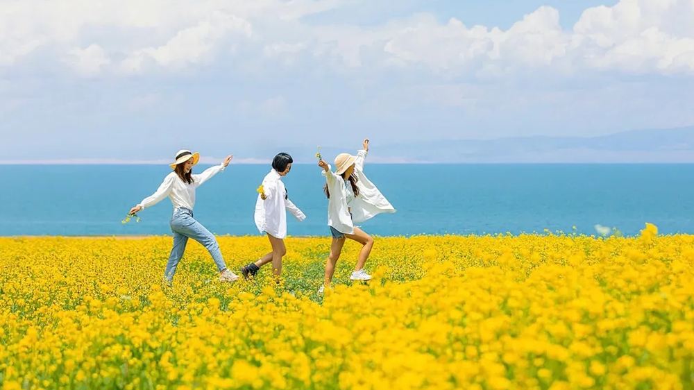 ▲ 7一8月是青海湖旅行季节,夏日青海湖的沿途风光比较旖旎。近年新修的环湖观光大道能让我们体会到风景永远在路上。蓝天、白云、蔚蓝的湖水,金黄的油菜花、紫色的蜜罐罐花、粉白色的狼毒花……将沿途风景打造成了绚丽的调色盘。这些美景交相辉映,宛如一幅幅精美的画卷,无限延伸,完美展现了大自然赠予青海的绝世美景,令人陶醉其中,流连忘返。天气好的时候,在停车港湾的地方就可以多拍点美照。