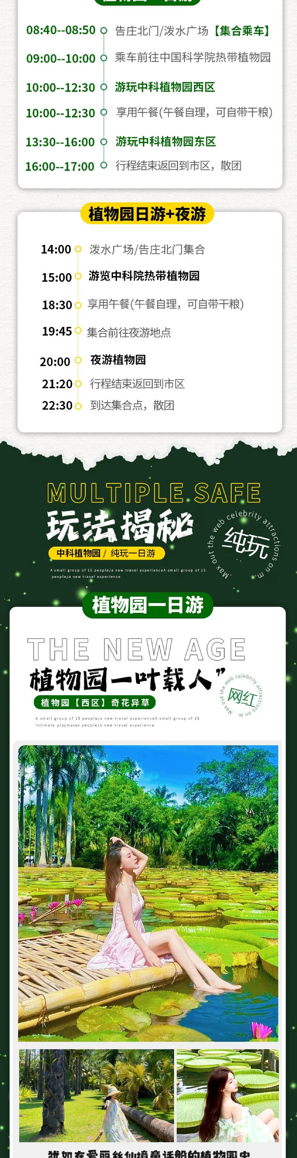 套餐B:往返车费+植物园门票+夜游费用(未满8人无导游)