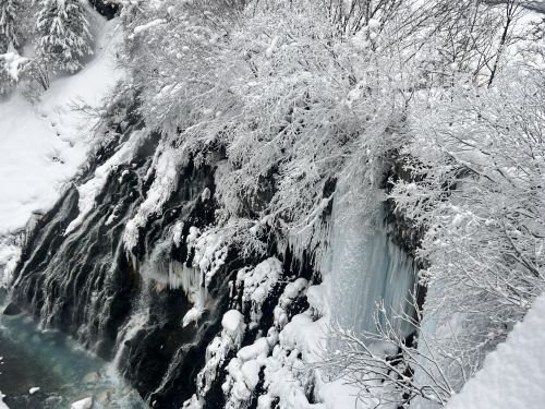 ▲ ※自2026年1月10日,该行程将追加美瑛青池景点。 冬季的美瑛青池,仿佛进入了一个静谧而纯净的童话世界。池水在严寒中逐渐结冰,原本湛蓝的水面被冰雪覆盖,池中枯立的落叶松被白雪包裹,像一根根静默的雕塑,营造出空灵而梦幻的氛围。