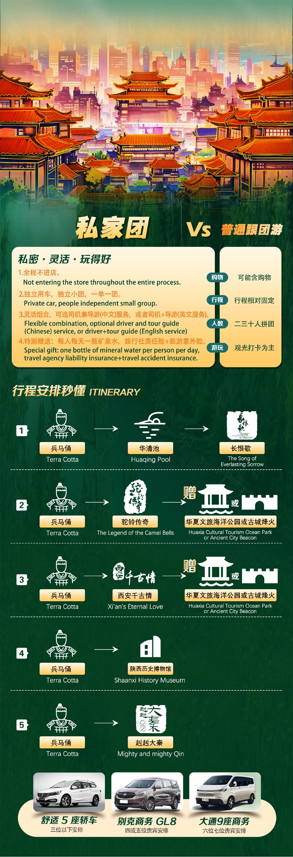 【2-6人纯玩包车】西安兵马俑+驼铃传奇秀+古城烽火演出【[私家精品小团]2-6人小团,三环内酒店上门接送,独立讲解,保证不拼团,一家一车,睡醒出发!】