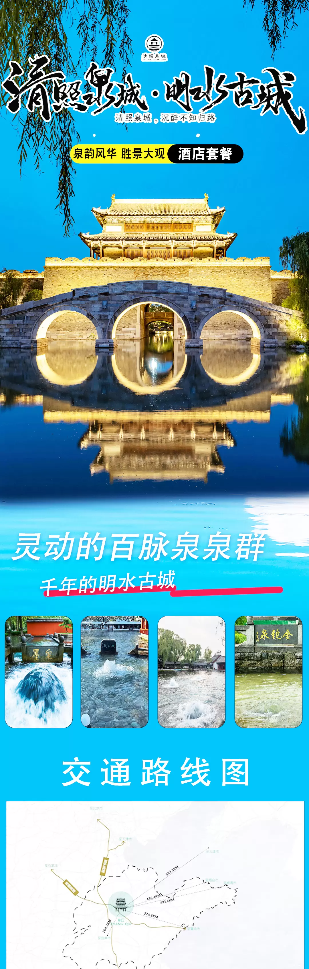 【清照泉城.明水古城2日畅玩】双人2日畅玩票+游览车无线坐+游船泛舟+景区内外各色酒店客栈任选+下午茶/小吃