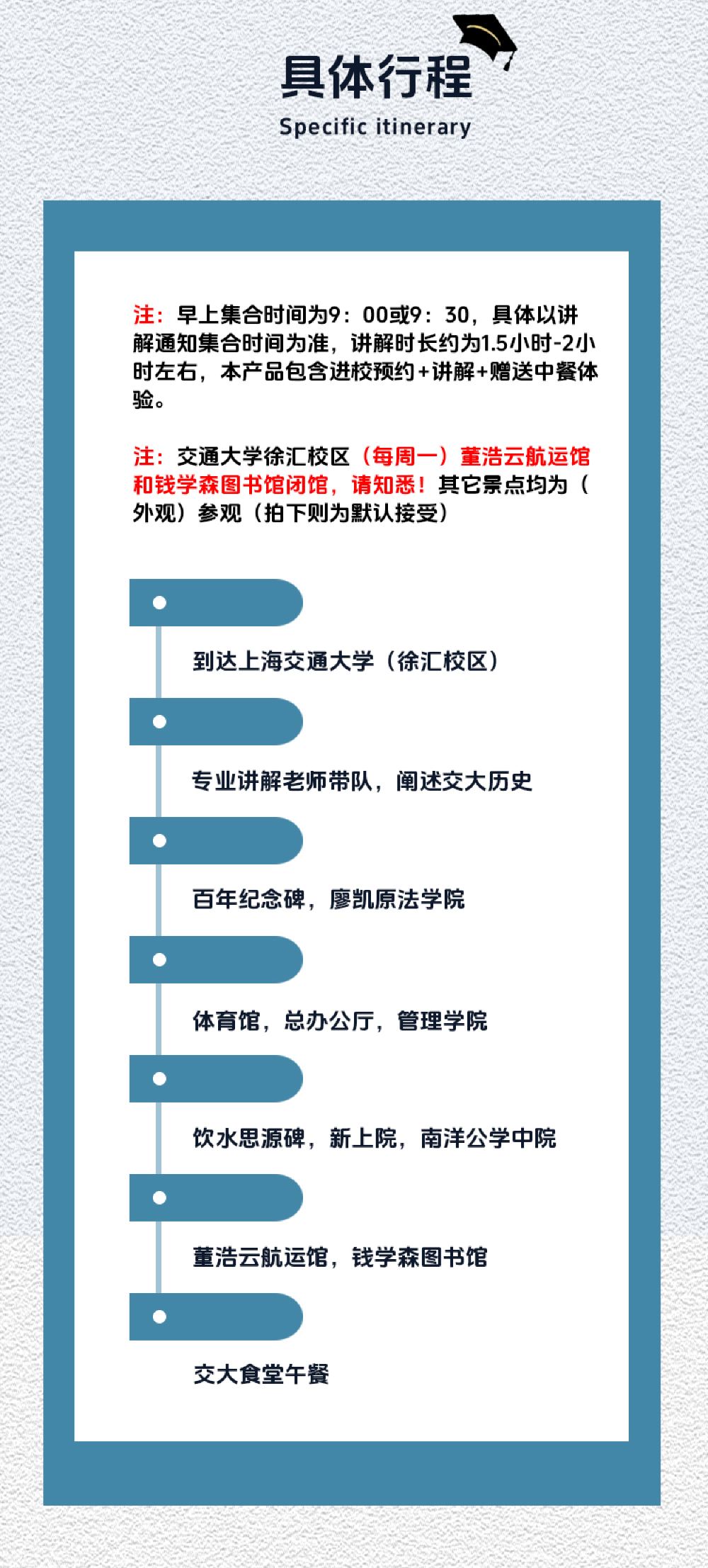 注:交通大学徐汇校区(每周一)董浩云航运馆和钱学森图书馆闭馆,请知悉!其它景点均为(外观)参观(拍下则为默认接受)