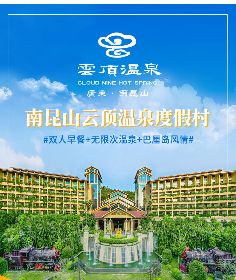 【酒店套餐】龙门南昆山云顶温泉度假村酒店 双人早餐+无限次温泉+玛雅水寨+恒温泳池+大芹温泉乐园+儿童乐园