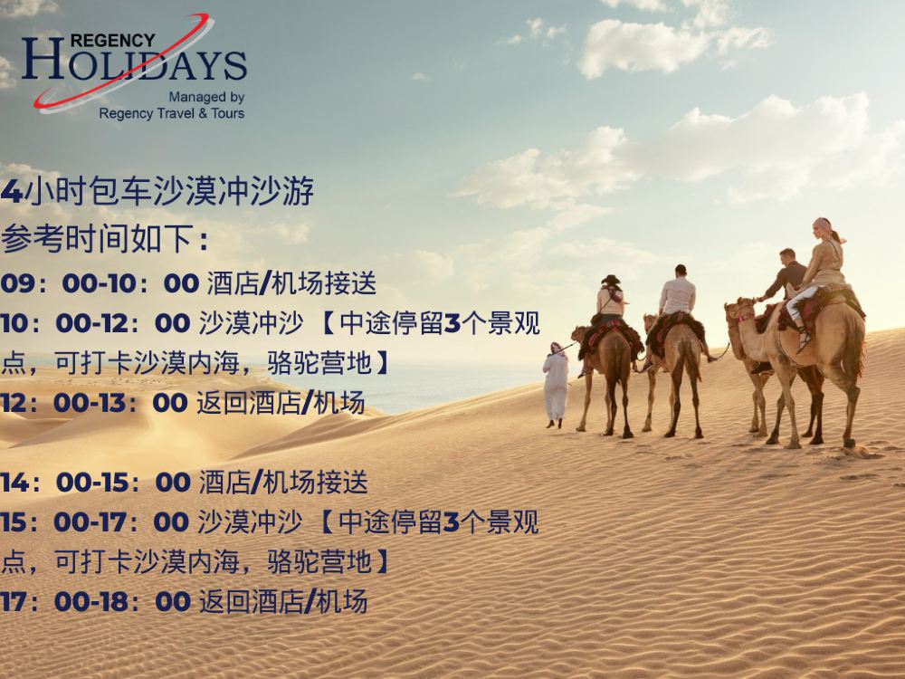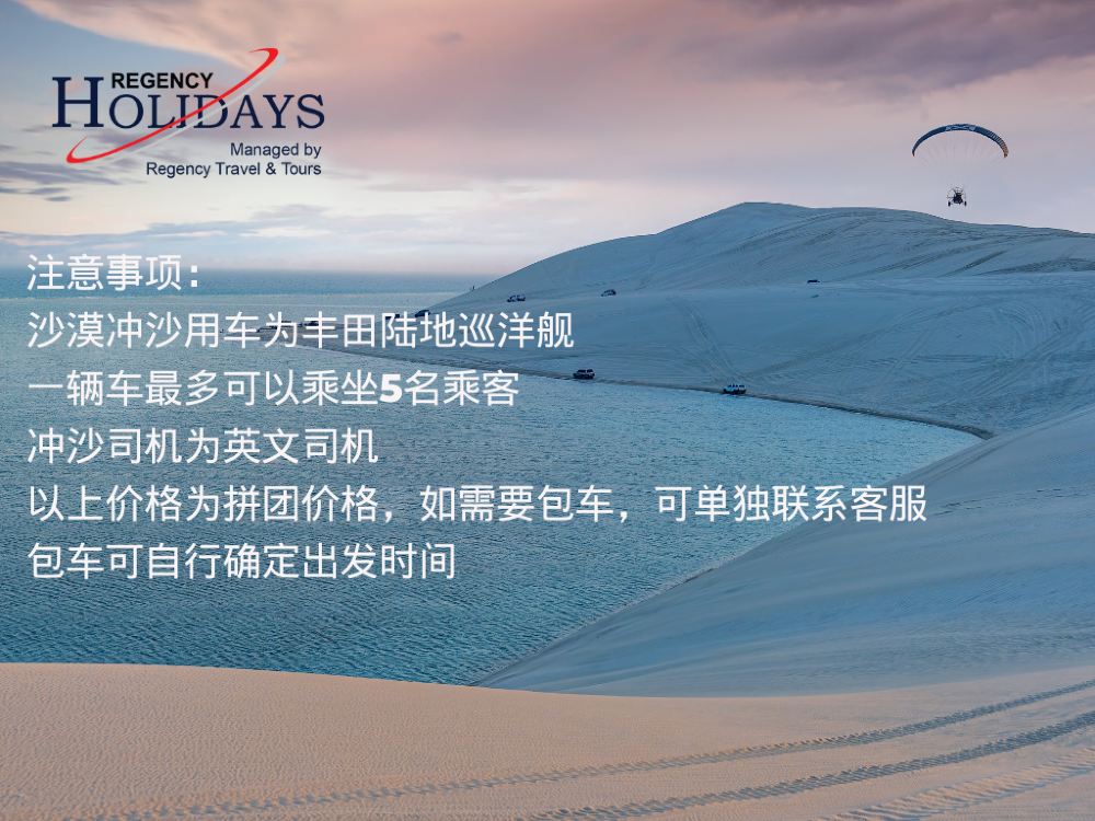 线路C/D:拼车冲沙游 +滑沙板 (一辆车含一个滑沙板,可在沙漠里滑沙20分钟)