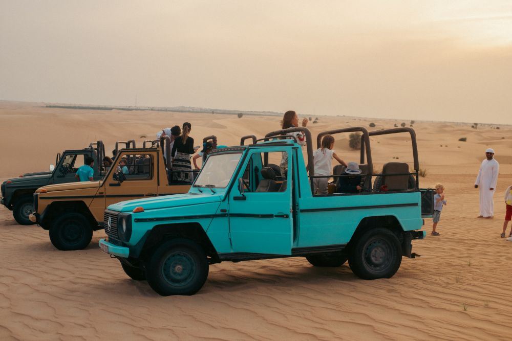▲ 踏上经典冒险之旅,乘坐复古G级奔驰穿越金色沙丘。像早期探险家一样体验沙漠——粗犷、精致且令人难忘。