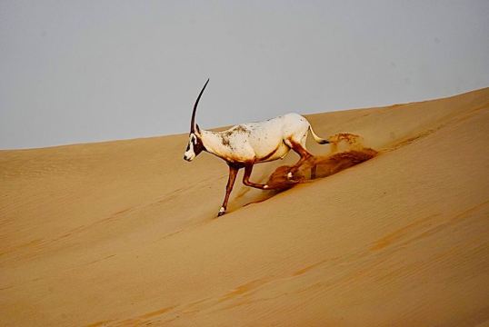 ▲ 在自然沙漠栖息地中,一睹阿拉伯大羚羊的雄伟风采,这种阿联酋国宝级动物。这是与这片地区受保护野生动物亲密接触的难得机会。