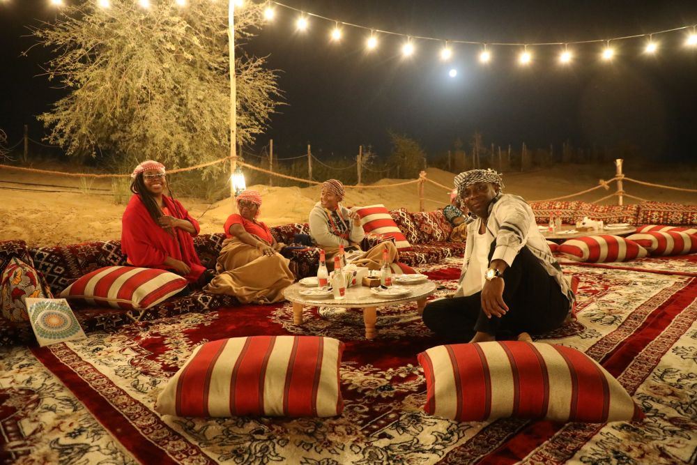 ▲ 在温暖沙漠氛围的环绕下,舒适地放松身心,感受传统地毯与靠垫的惬意。这是建立联系、开怀大笑、分享此刻魔力的**机会。