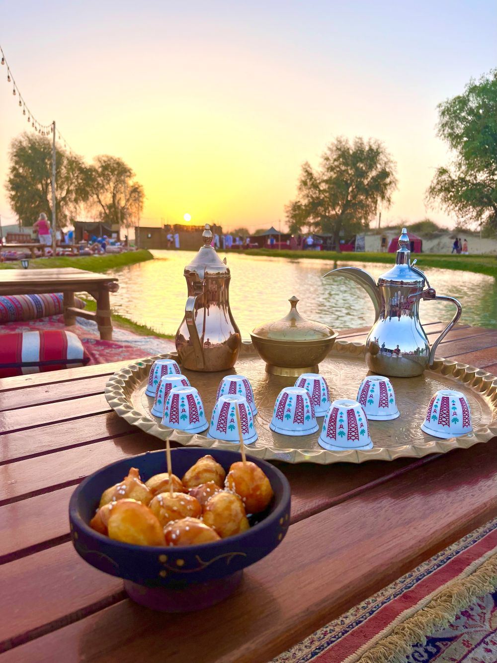 ▲ 品尝地道的阿拉伯风味,享用传统阿拉伯咖啡、椰枣和甜点。这份热情的款待体现了阿联酋人慷慨好客的传统。