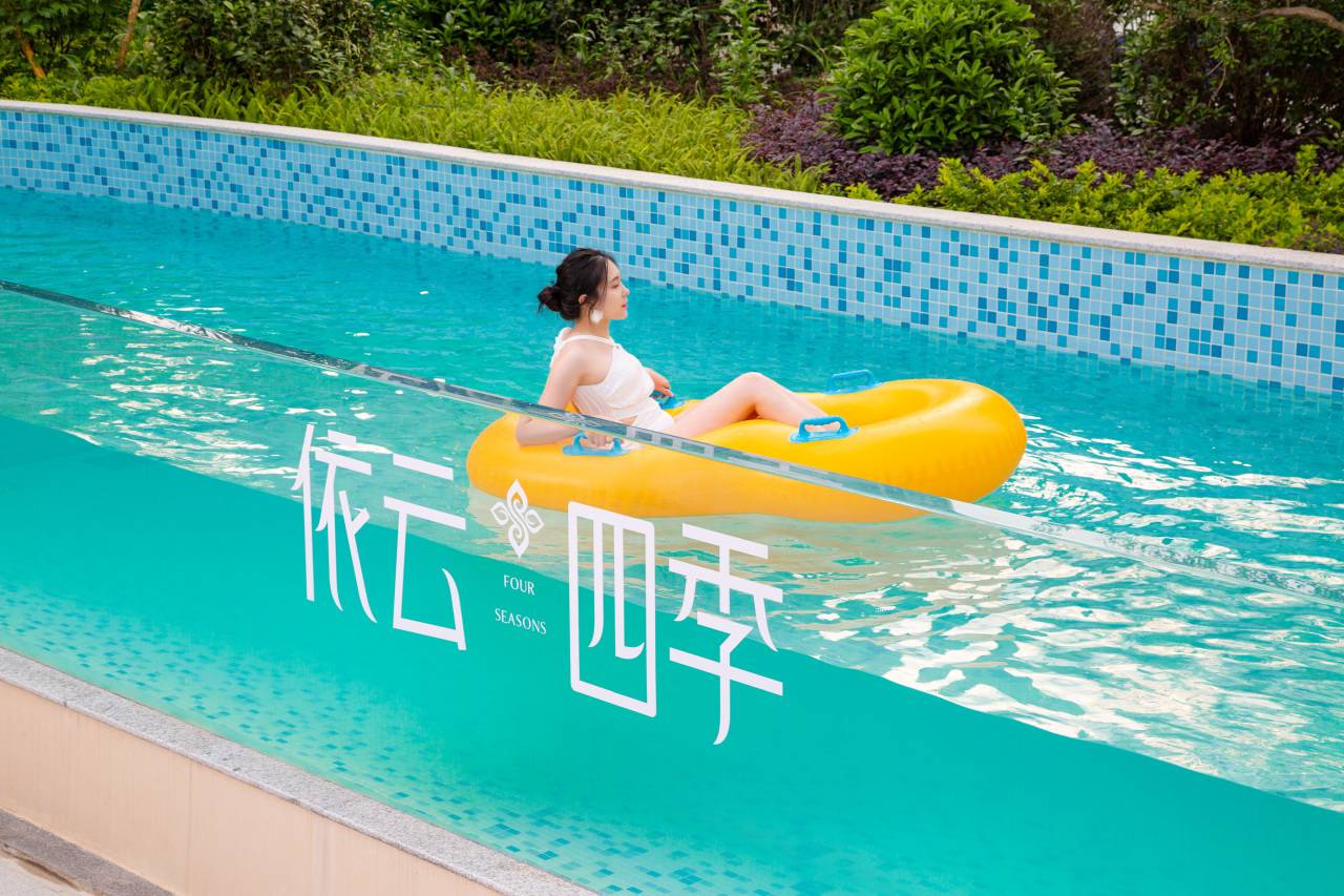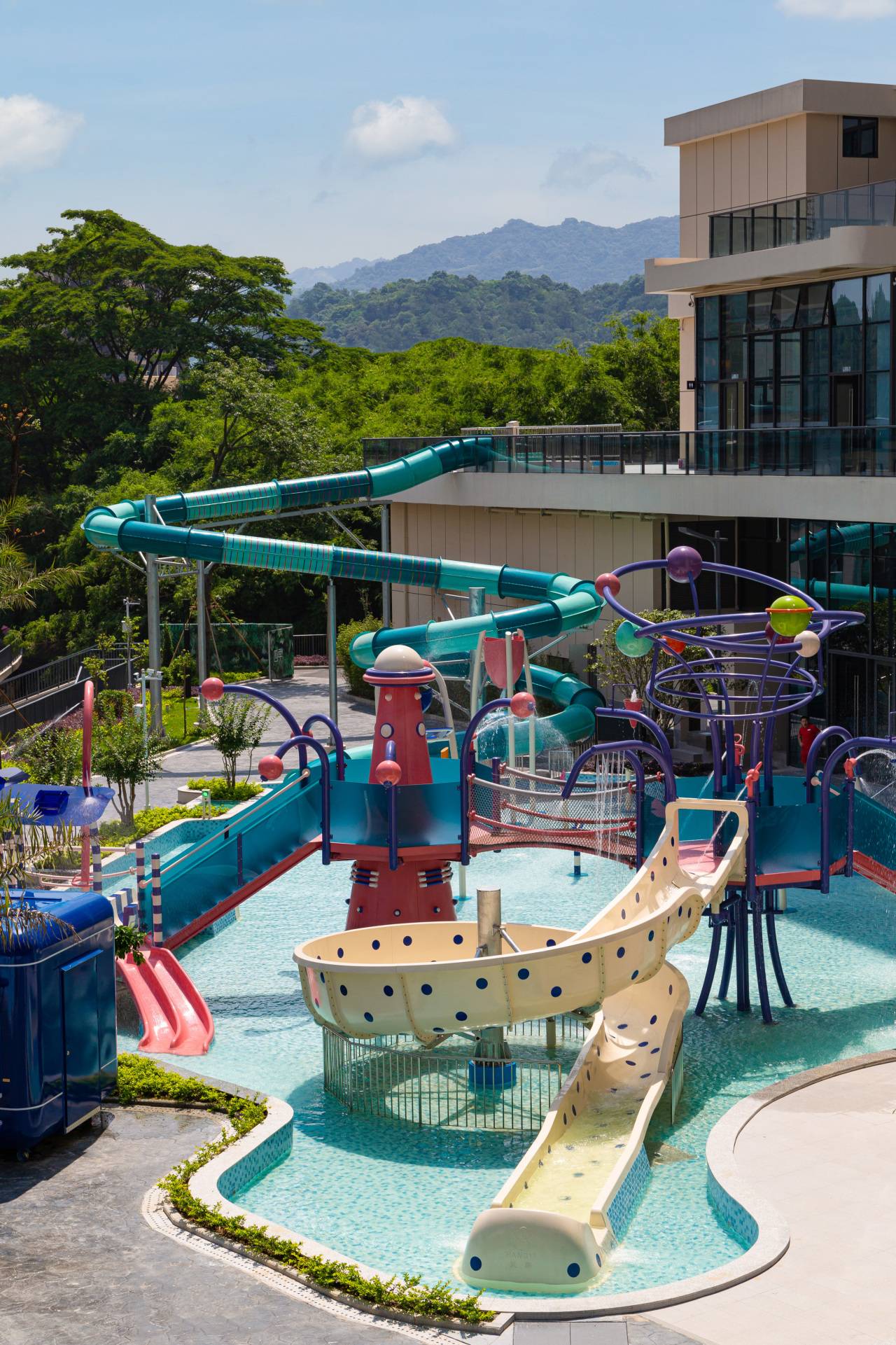 水上攀岩、高空旋转滑梯、漂流河、依云水寨...
