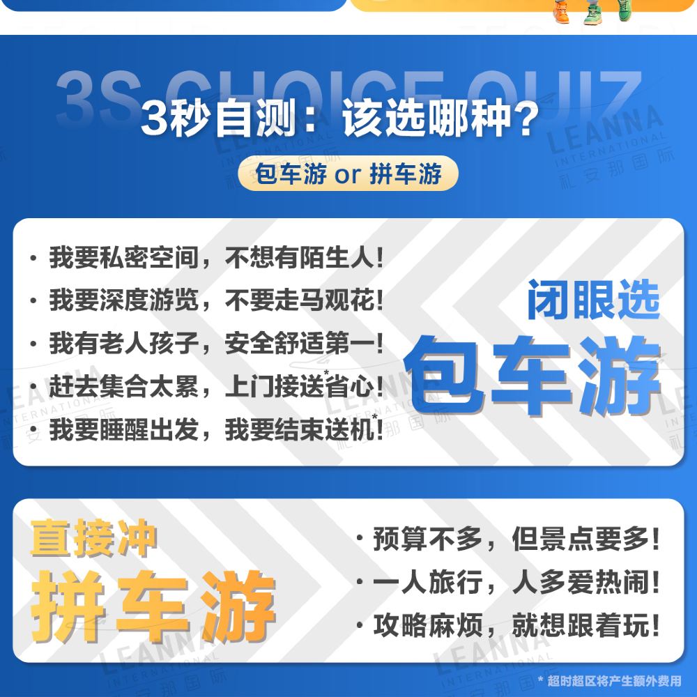 *如需增加游览时长/景点数量,或接送超区、需额外补费哦~