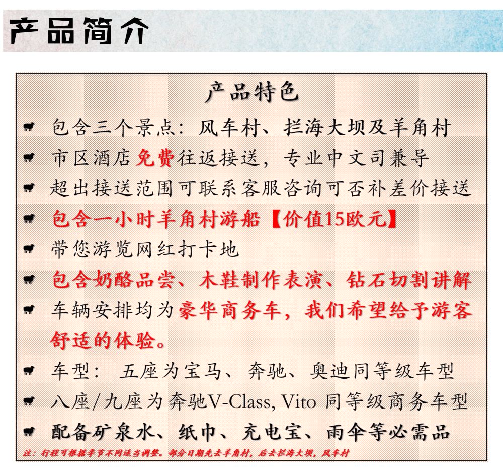 荷兰风车村+拦海大坝+羊角村一日游【赠游船、含酒店接送】【包含羊角村游船一小时[价值15欧元]】