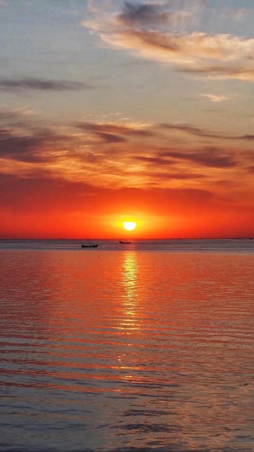 14:30后沙广场,烟台海边日落天花板。