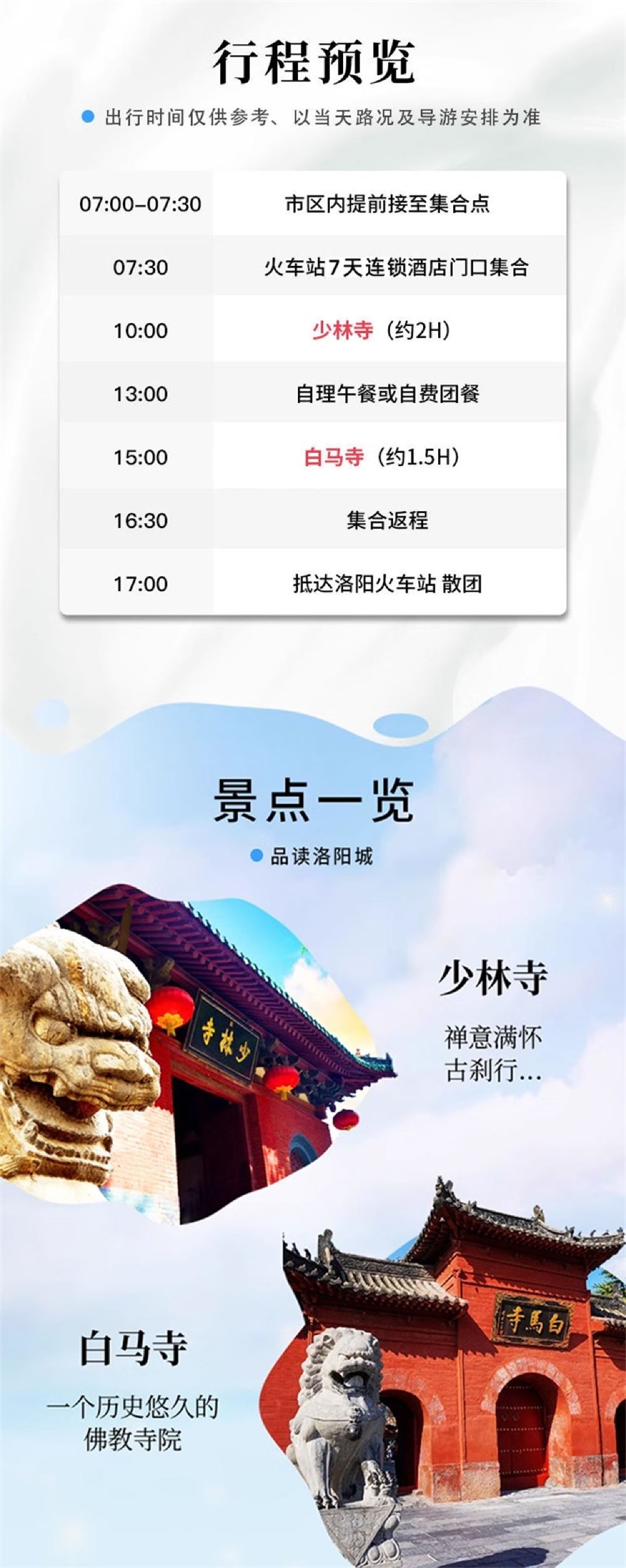 少林寺+白马寺一日游【市区内上门接/含讲解 门票/纯玩团】【[参团便利] 市区中心路段,均可安排接;】