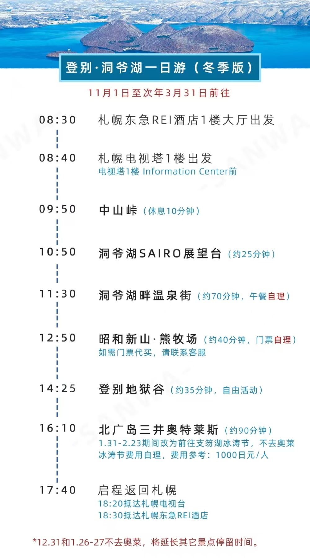 日本 北海道 登别洞爷湖拼车一日游(昭和新山熊牧场+地狱谷)【体验冬季北海道北国风光】