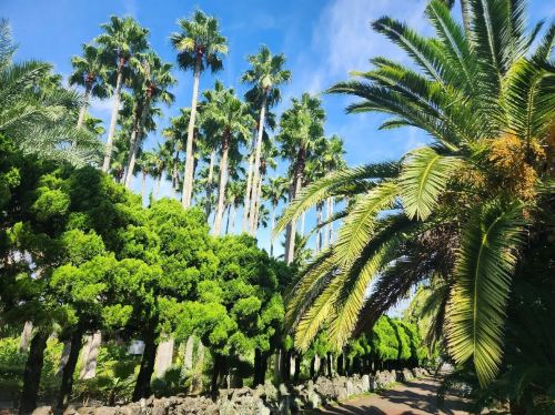 ▲ 位于汉拿山西侧约33km处的翰林公园因狭才、金陵海水浴场及飞扬岛的优美景色,成为济州境内首屈一指的著名旅游景点。10万余坪的大地上种满挺拔的椰子树与松树,又有多种鲜花点缀其间,一年四季色彩缤纷。