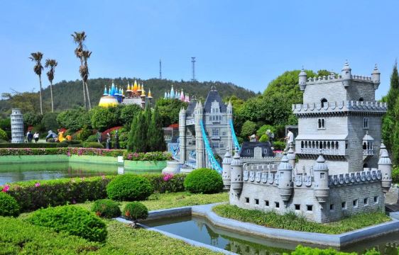 ▲ 小人国主题乐园位于著名的旅游胜地济州岛上,2万多坪的腹地中云集着北京紫禁城、伦敦塔桥、意大利比萨斜塔等30多个国家的100多件著名建筑物模型。还有济州石文化、民俗信仰、恐龙化石等陈列其中。